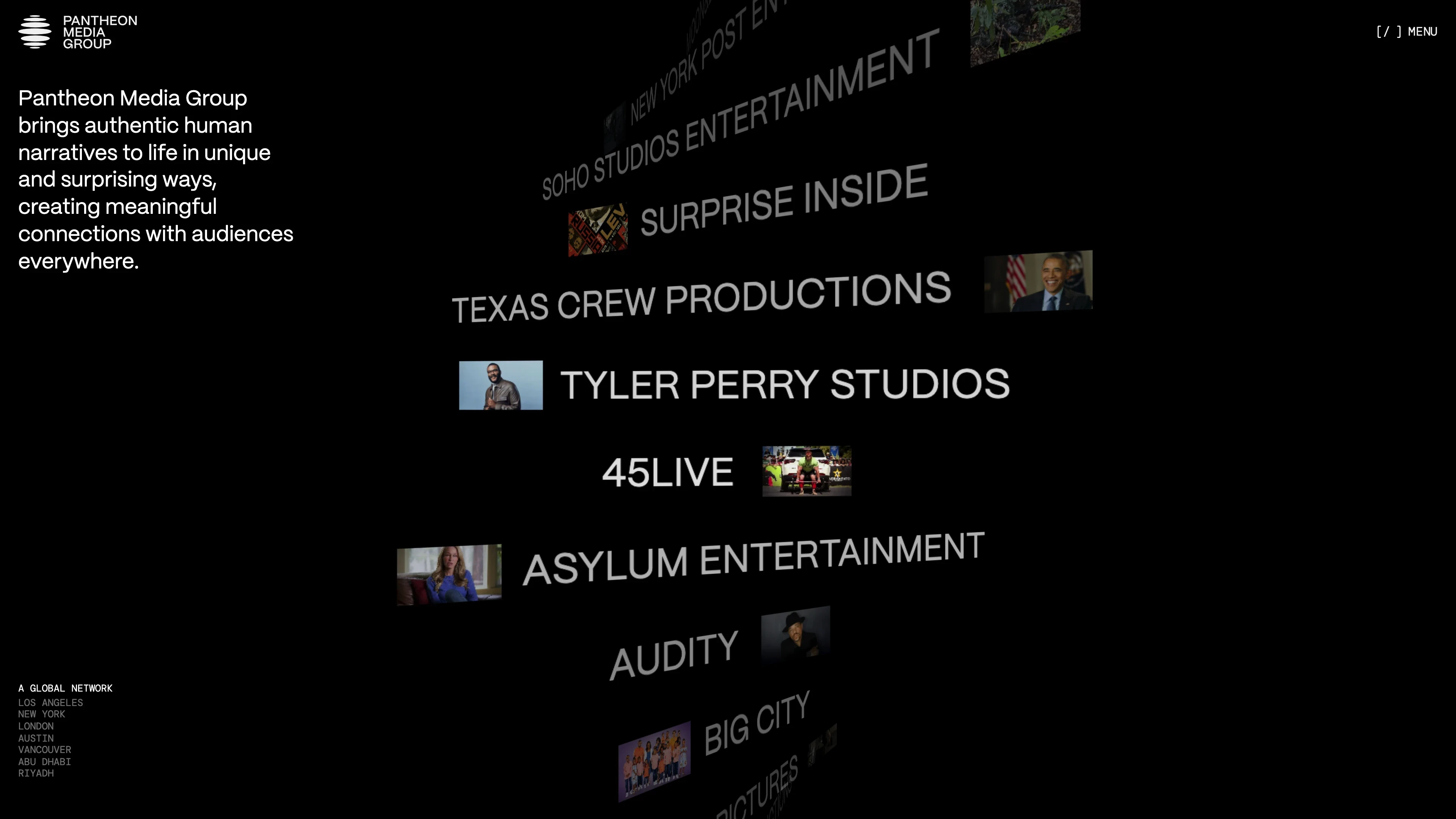 Pantheon Media Website Design Pantheon Media Group is one of the fastest-growing companies in entertainment. We operate multiple labels worldwide across all genres in all forms of content.
