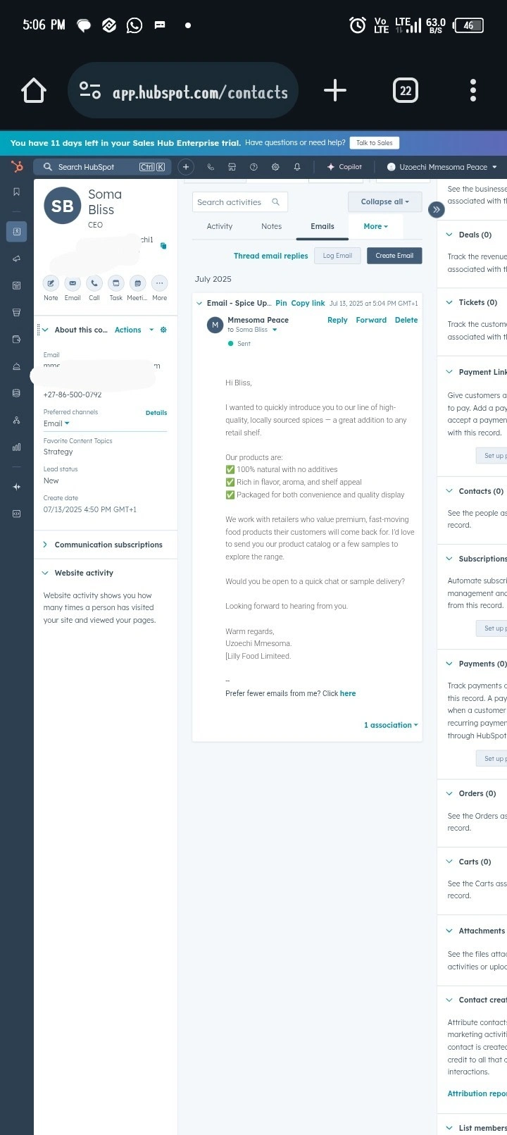 Launched a cold email campaign through Hubspot to engage retail leads, introduce product offerings and initiate conversations for sales qualification.