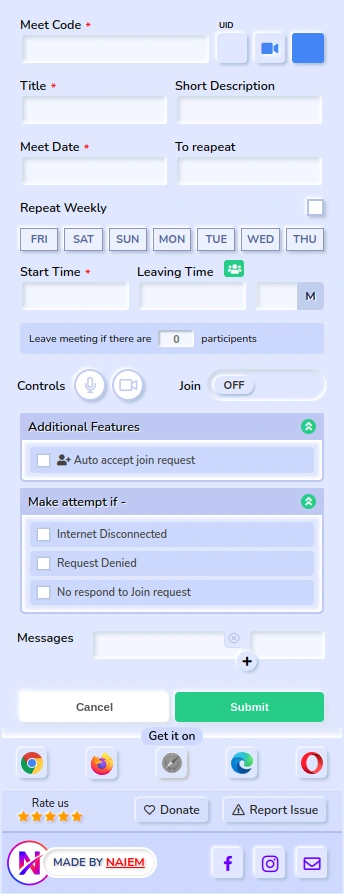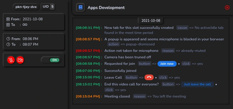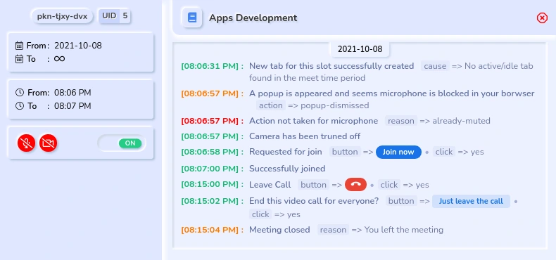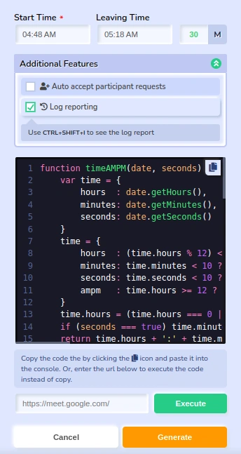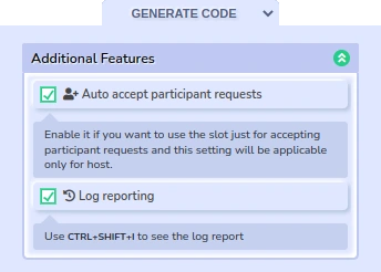 Auto accept particiapnt requests option from the Additional feature tabLog reporting option to see the update while the generated code were executed.