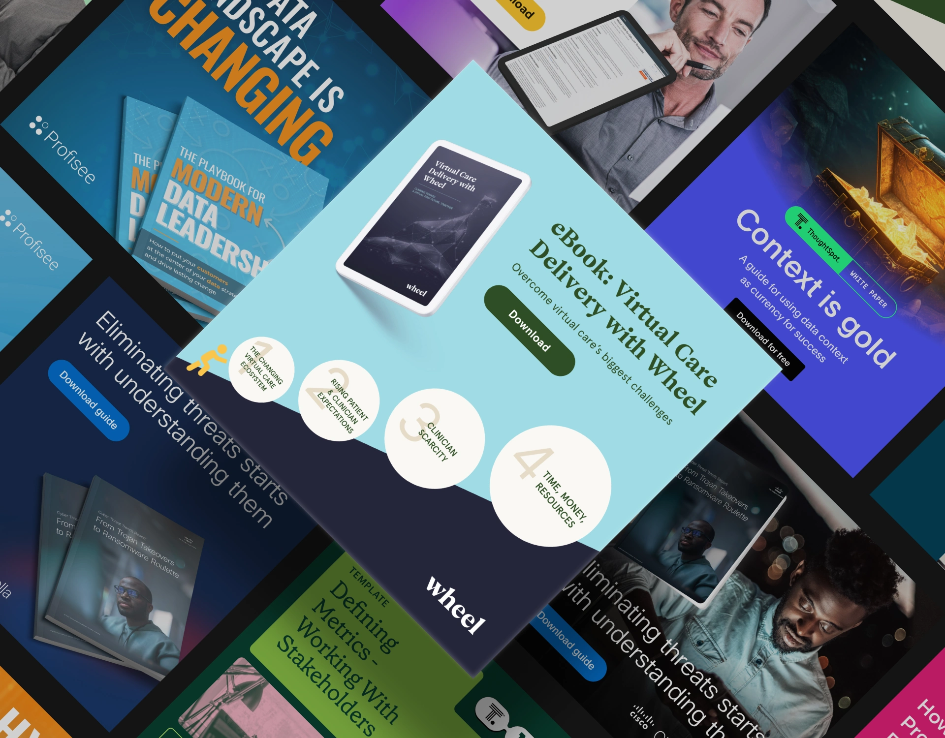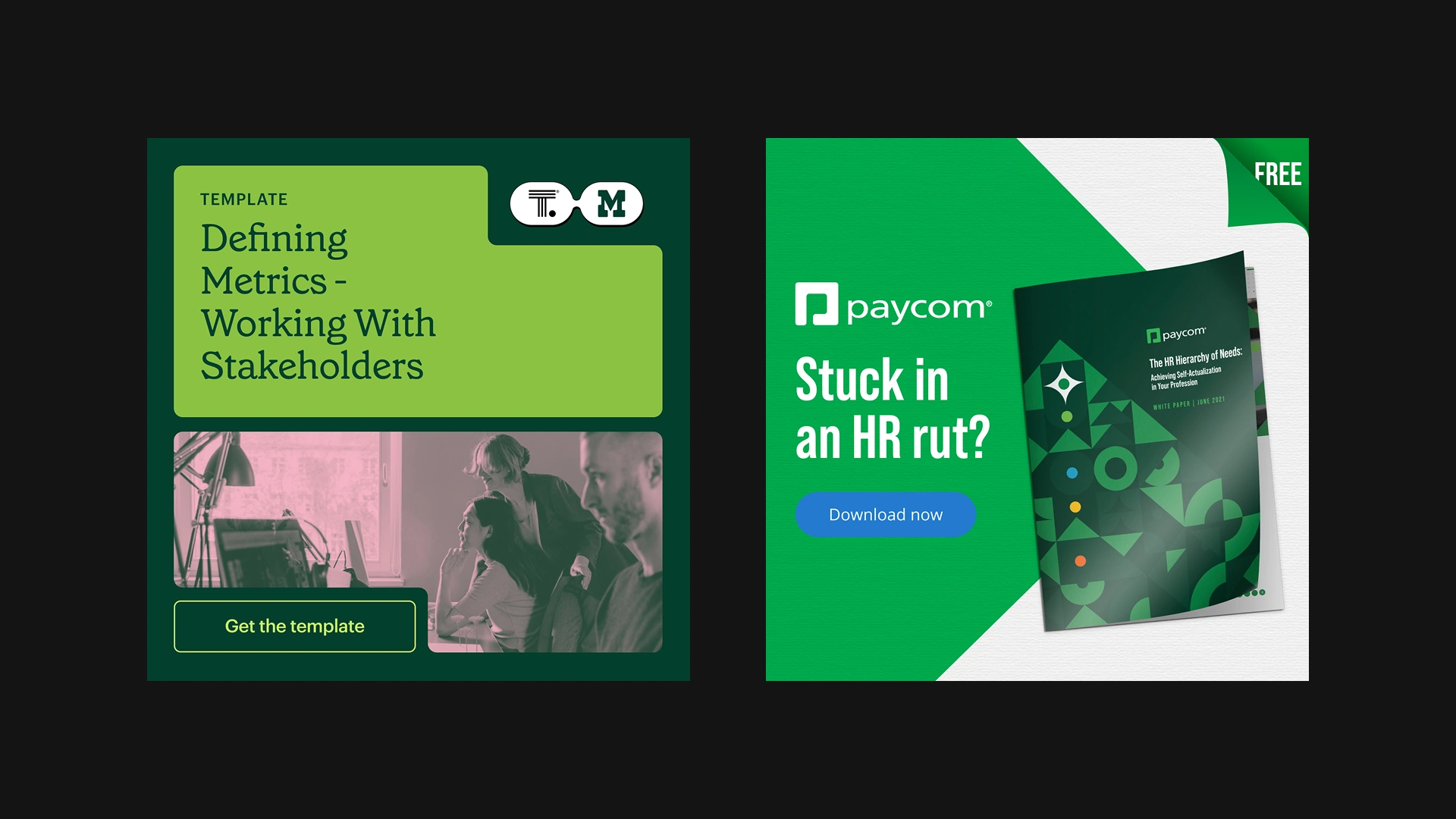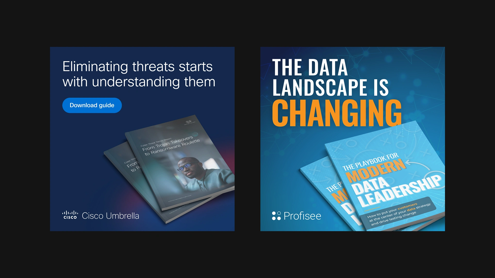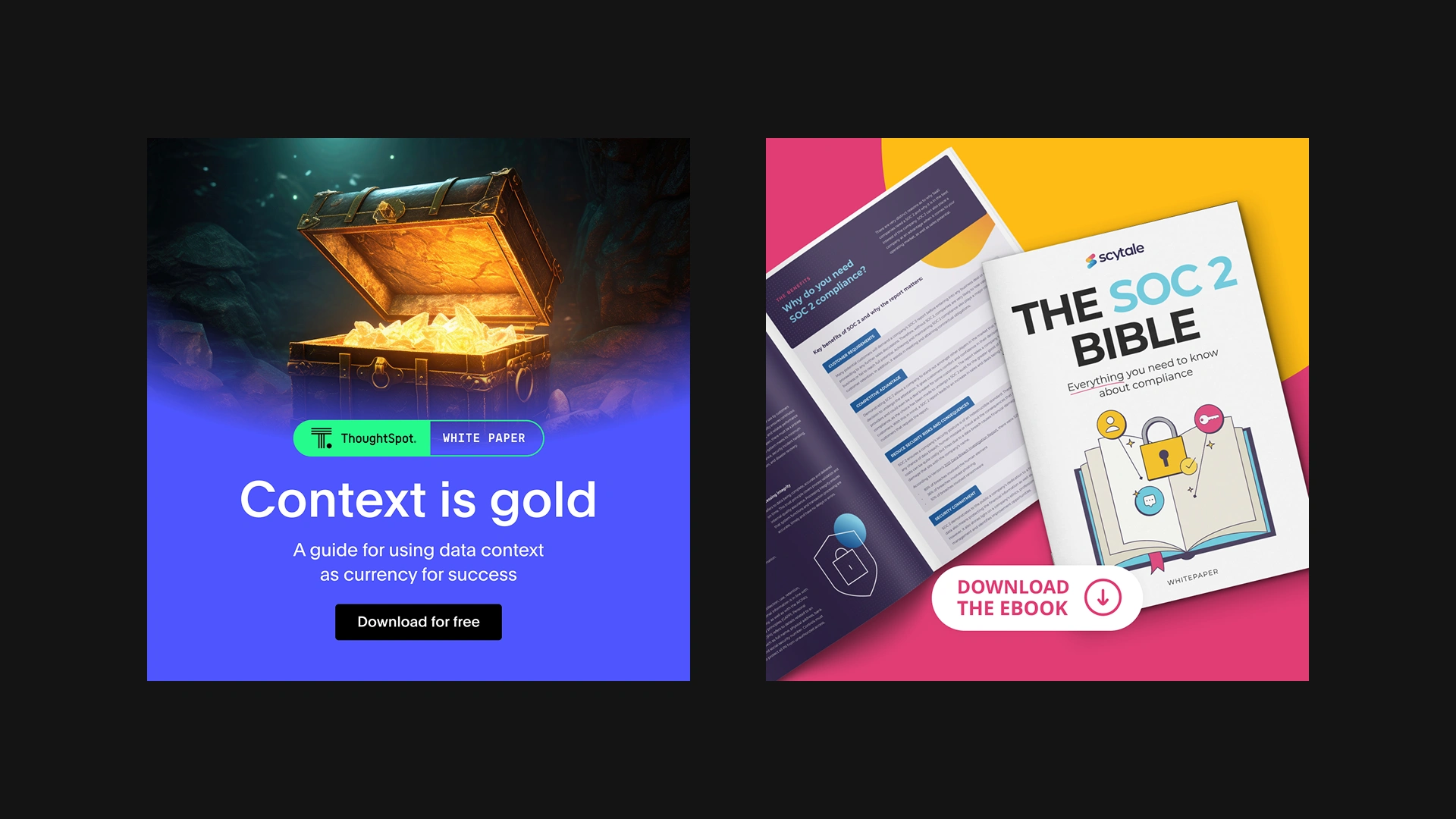 B2B SaaS ads for eBooks and guides. Technical resources are visualized through content mockups and previews to represent value and drive lead generation.