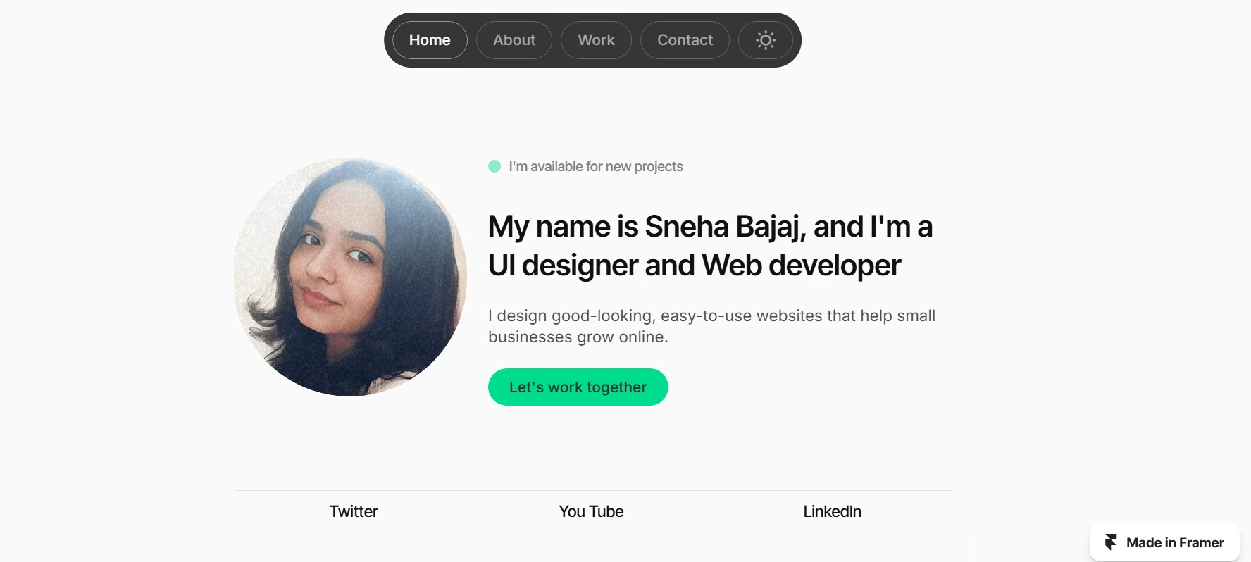 Personal website built with a Framer template, customized to showcase my skills as a web developer and designer.