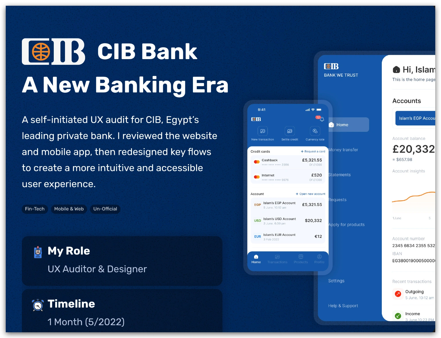 The outcome? A version of CIB’s app that would feel smoother, cleaner, more trustworthy. While this was an un-official exercise (no full rollout), I consider it one of my most meaningful design explorations. It sharpened my ability to spot subtle UX debt, to push for clarity over aesthetics, and to design banking that’s not just functional — but human.
