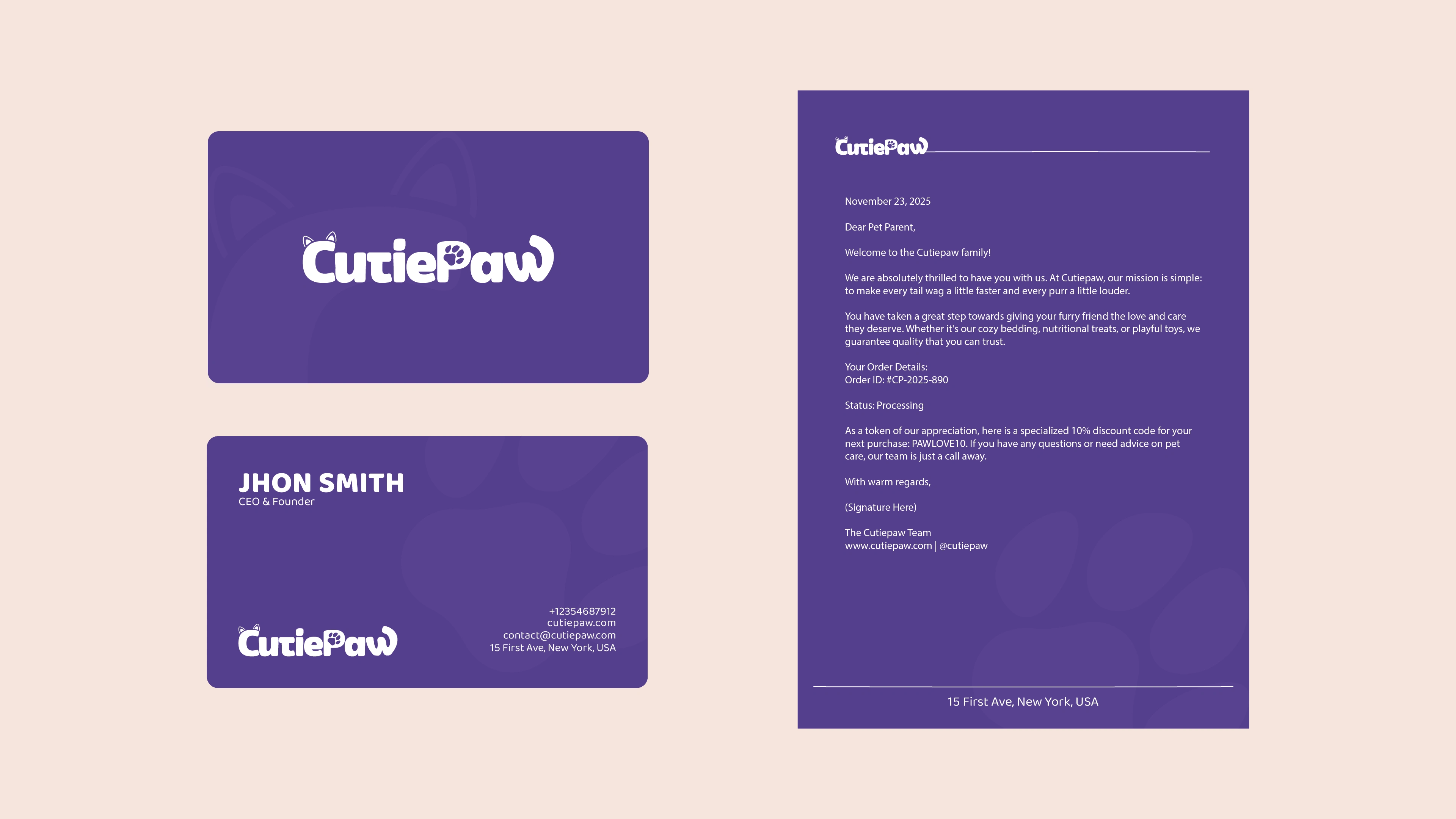 At Imagine Geometric, we started by understanding the emotional bond between pets and owners. This guided our direction toward a soft, warm and friendly identity. Through careful exploration of colors, shapes and personality, we crafted a visual style that communicates safety, care and natural goodness. The result is a gentle and joyful brand world that reflects what CutiePaw stands for.
