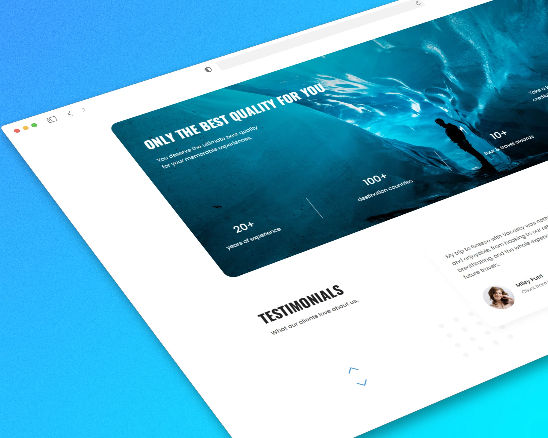 User Engagement Sections: Designed sections for testimonials, user reviews, and traveler stories to build credibility and social proof.