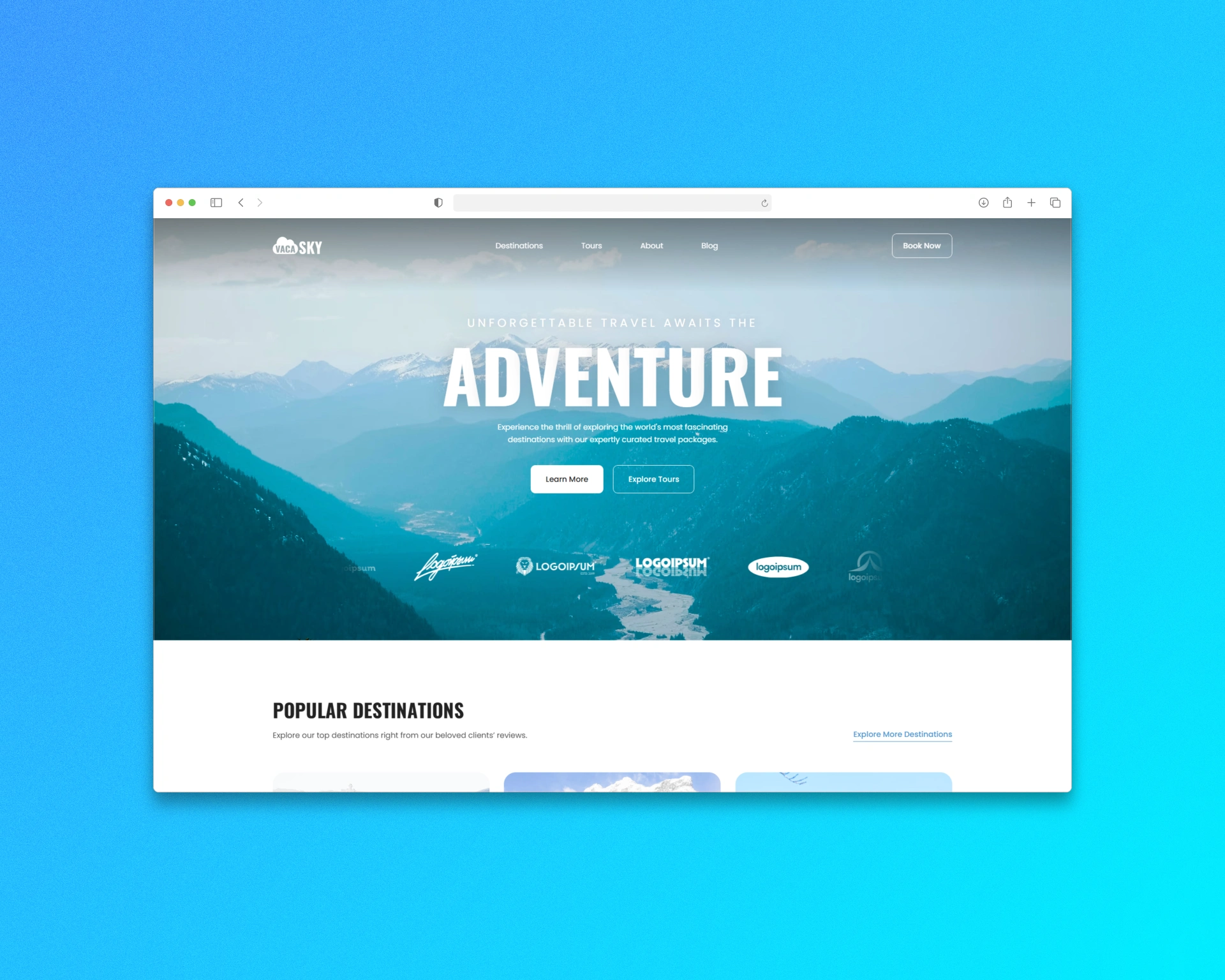 Project Scope: End-to-end design of a travel experience platform website, including destination storytelling, feature showcases, user engagement flows, trip inspirations, and conversion-focused sections.