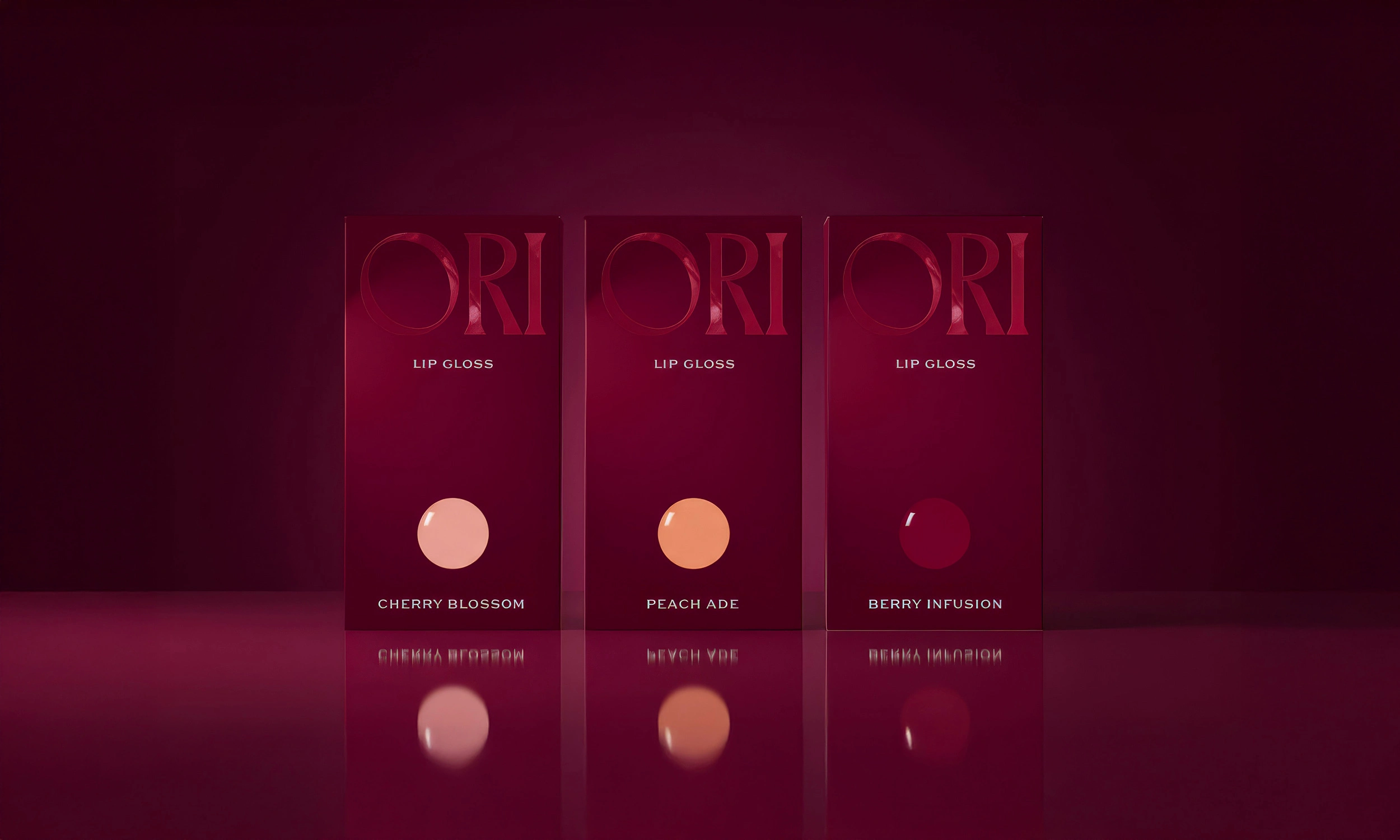 ORI is a lip gloss concept designed to trigger the senses through sculptural packaging, rich berry tones, and editorial art direction. More than a beauty product, ORI explores the concept of lusciousness and hydration—positioning itself as an indulgent, modern, and tactile experience. The brand promises not just a product, but a sensorial journey: the feeling of plump, glossy lips captured through both form and visual storytelling.