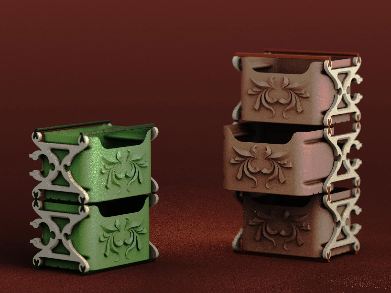Designed a fully 3D printable modular drawer system with a vintage carpentry aesthetic.