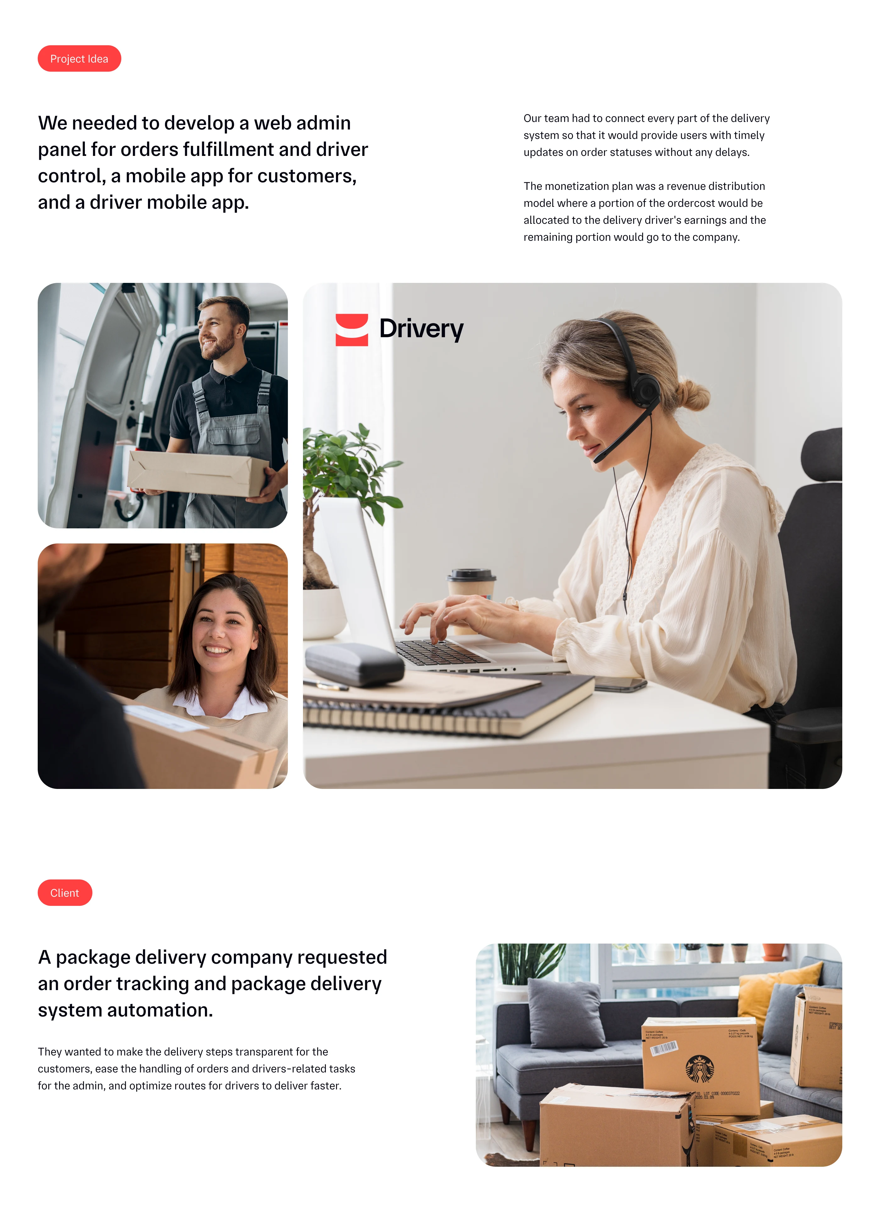 Discover Ronas IT's delivery app case: an all-in-one web admin panel, easy customer ordering app, and efficient driver app for streamlined package delivery.