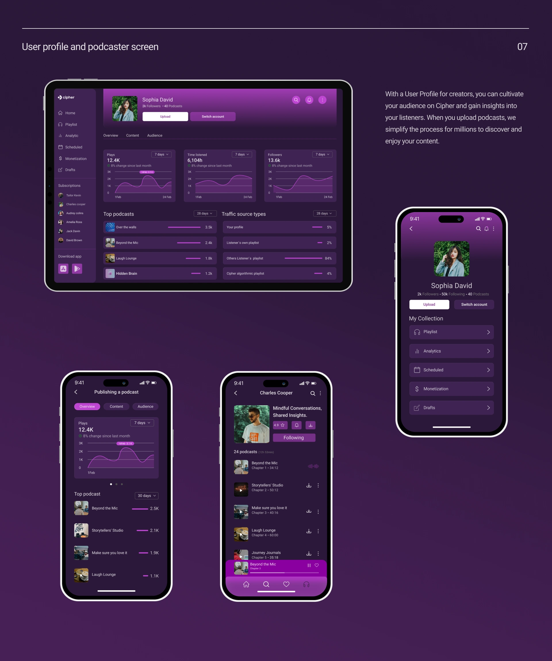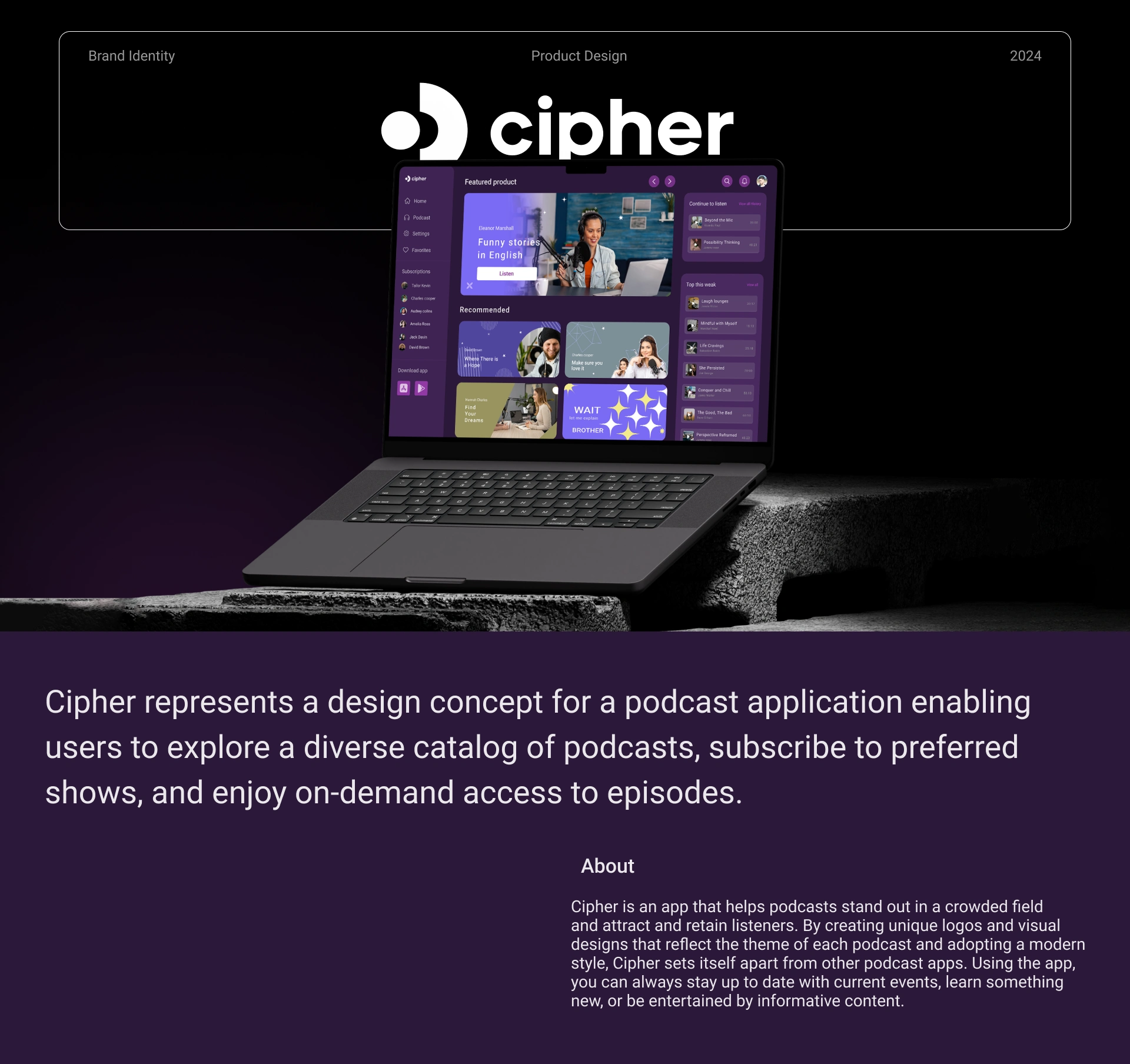 Cipher is a modern, responsive podcast app designed for smooth navigation and great user experience across all devices.
