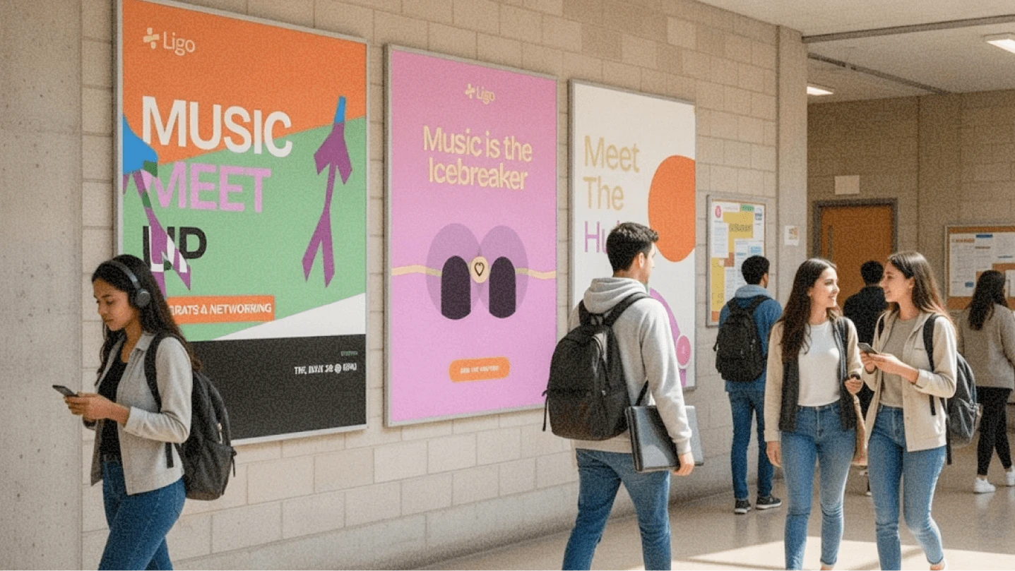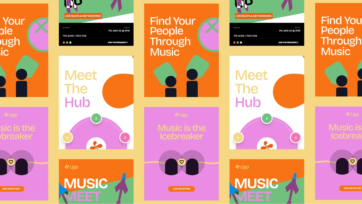 This concept is more abstract and symbolic. It represents movement and flow, inspired by the idea of music waves and human energy without directly showing people. The form suggests rhythm and connection in a minimal way, making it suitable for a clean, modern app icon.