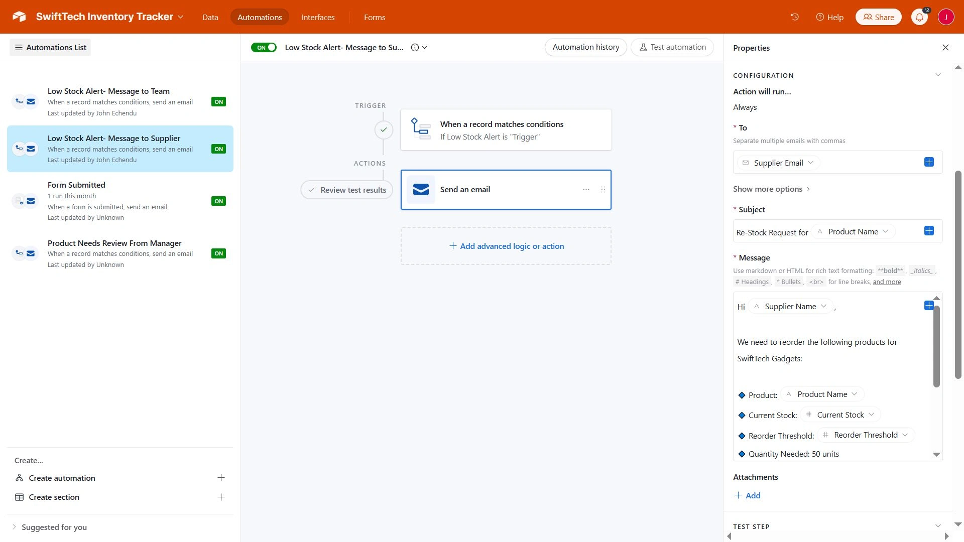✔️ Built with 1 table + 4 automations