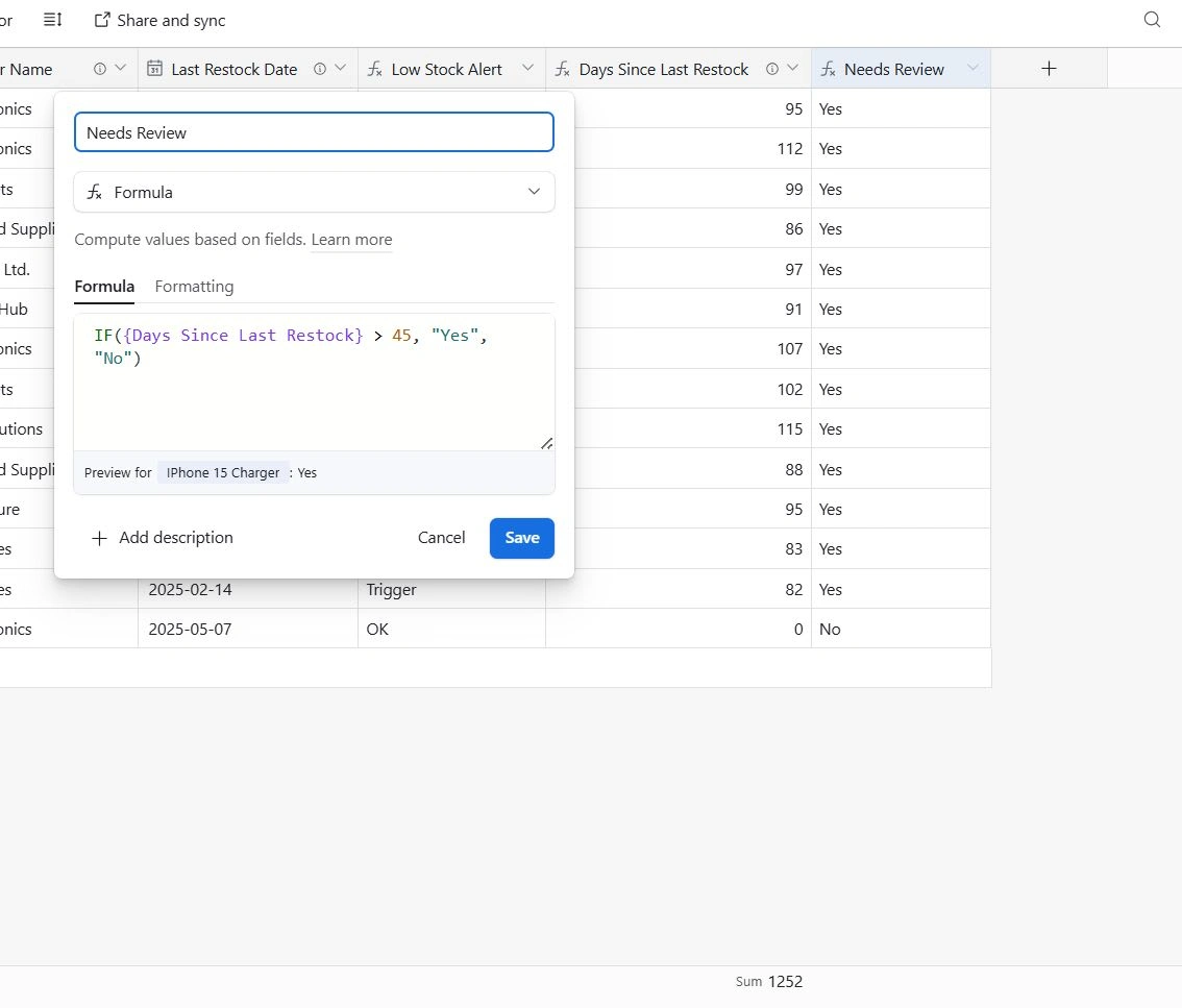 Built a no-code Airtable system with idle stock detection, saving 10+ hours/week and $10K+ in carrying costs for a retail client.