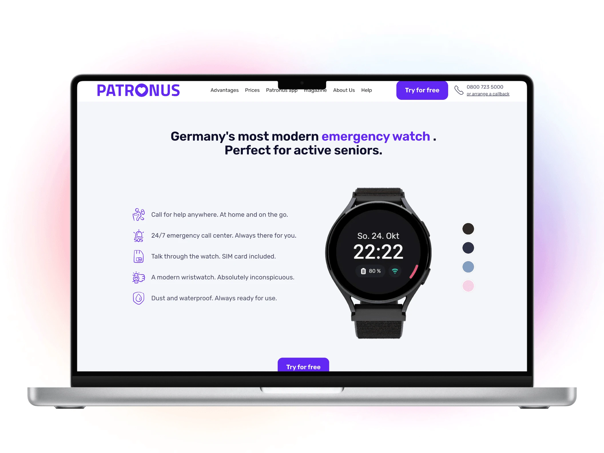 Patronus is a German company emergency call watch for seniors. We collaborated with their marketing team to develop an SEO-optimized Webflow site from Figma.
