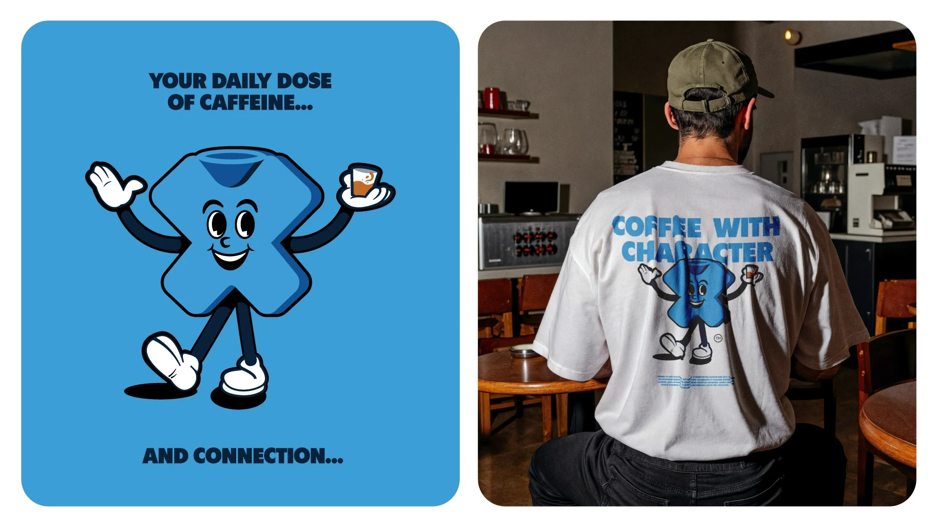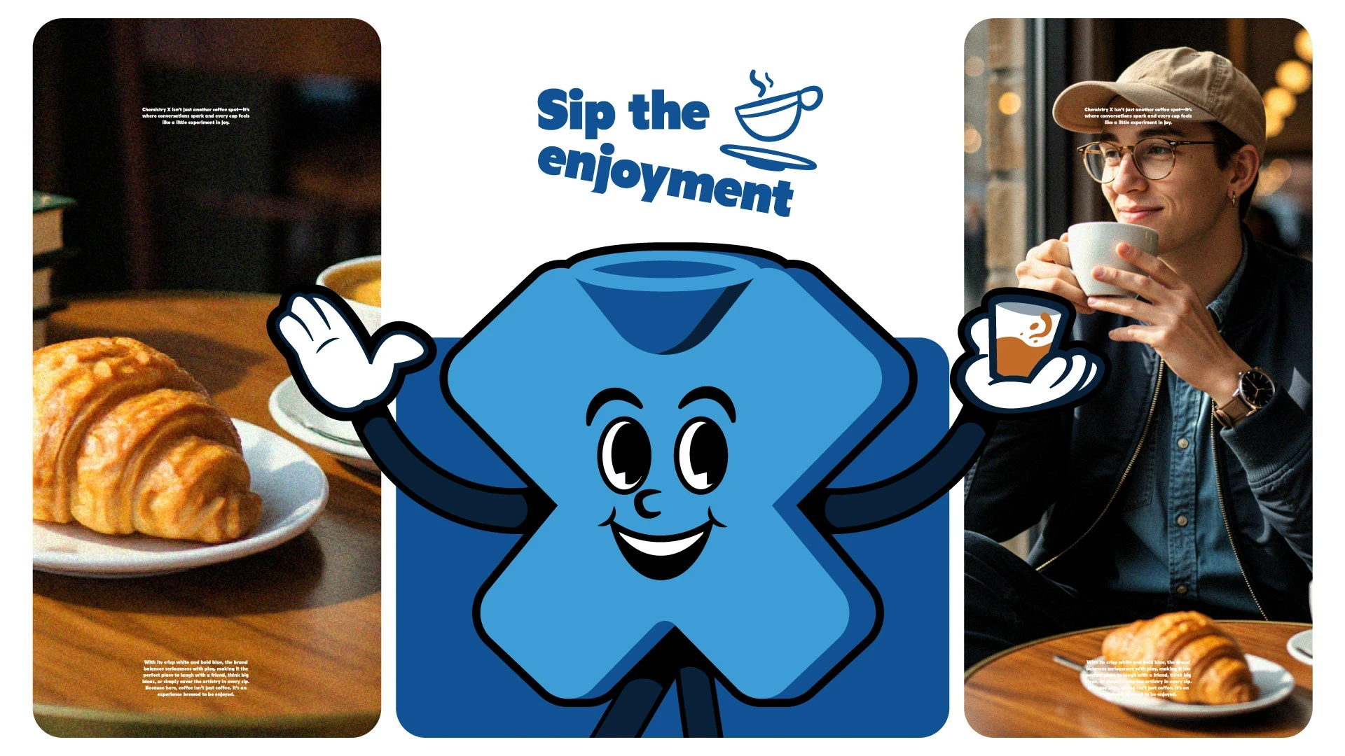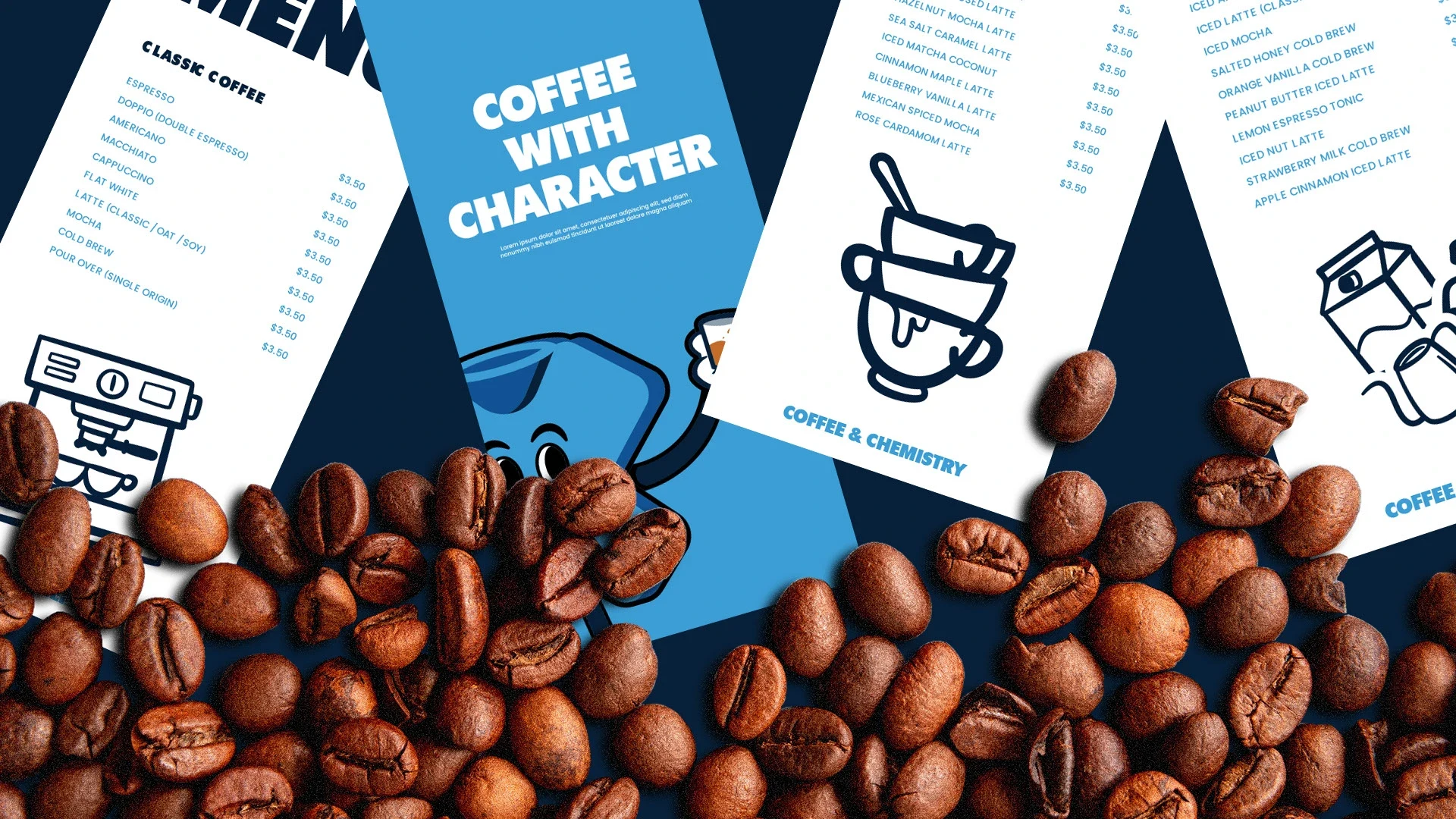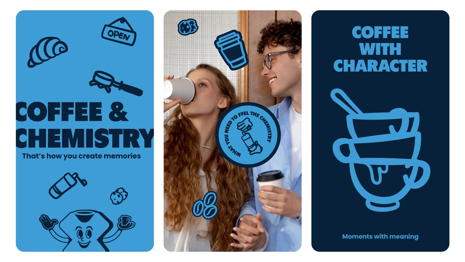 Blue is often linked to trust, honesty, and calmness, which makes it the perfect backdrop for genuine conversations between friends. The lighter blue brings in a sense of playfulness and openness, while the deeper navy grounds the brand with seriousness and stability. Together, they create a balance that reflects the essence of Chemistry X: a place where coffee isn’t just about warmth in the cup, but about the warmth of connection that grows when friends share it.