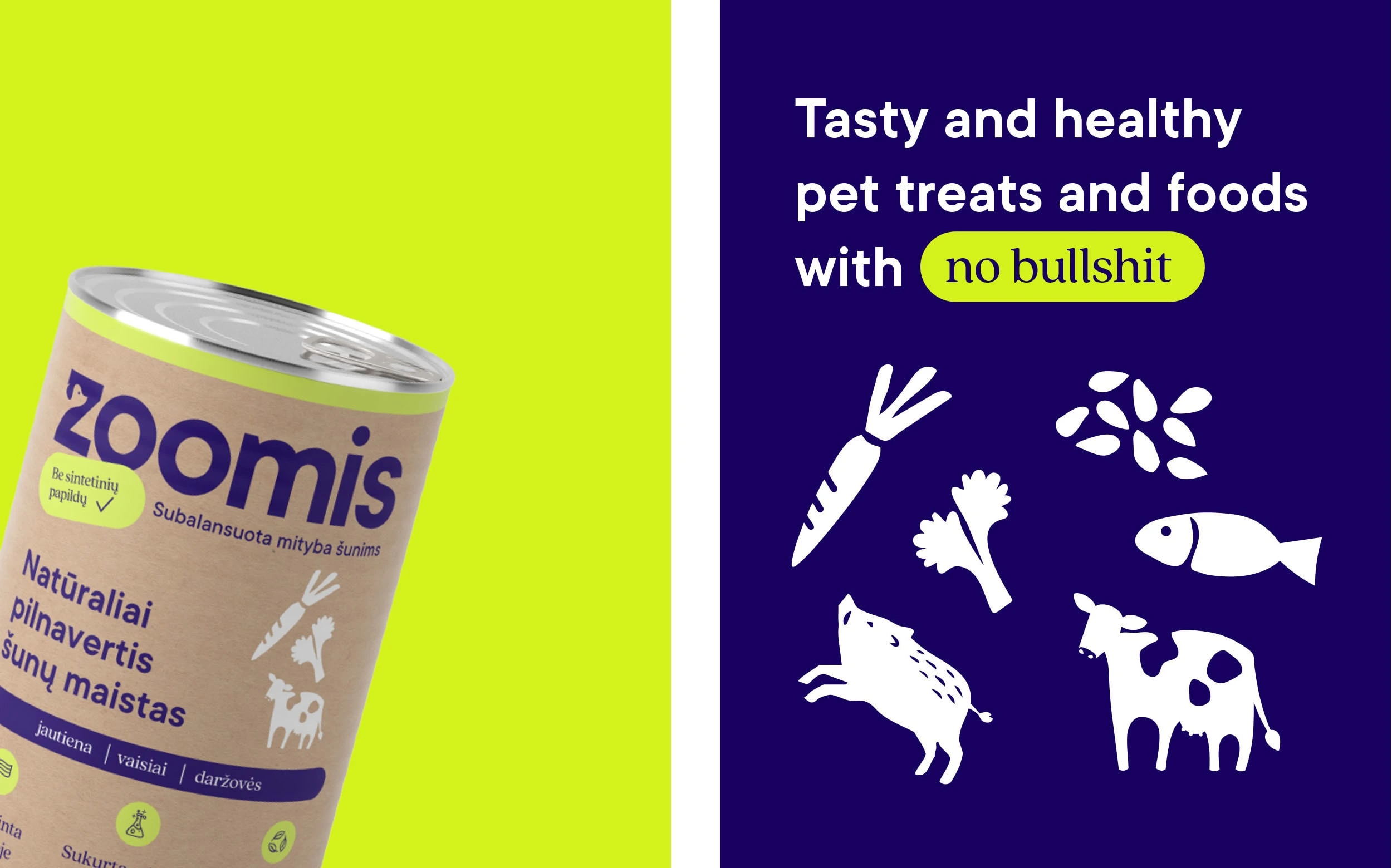 Zoomis is a brand offering pet treats and supplements designed by a nutritionist and backed by high-quality science. For this project, I created a brand identity aimed at the new generation of health-conscious pet owners who want the same high standards for their pets as they do for themselves. The visual direction focuses on being modern, friendly, and trustworthy, reflecting a brand that combines nutrition, transparency, and genuinely enjoyable treats for pets.