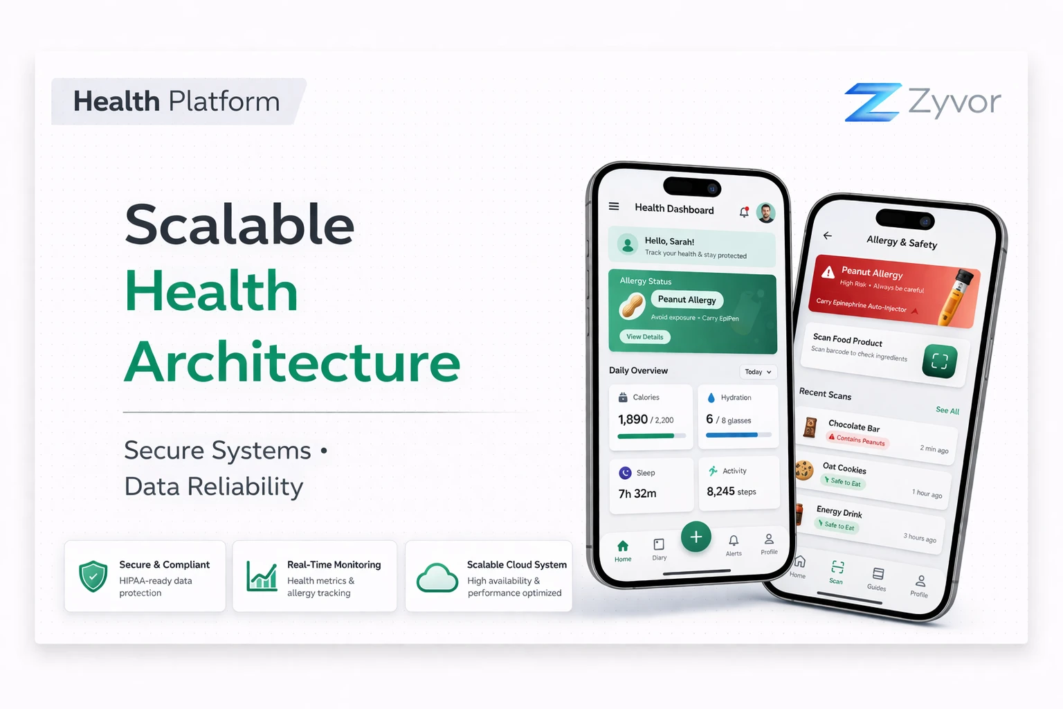 Designed scalable health platform architecture with secure data handling, optimized APIs, and reliable system performance for user-critical workflows.