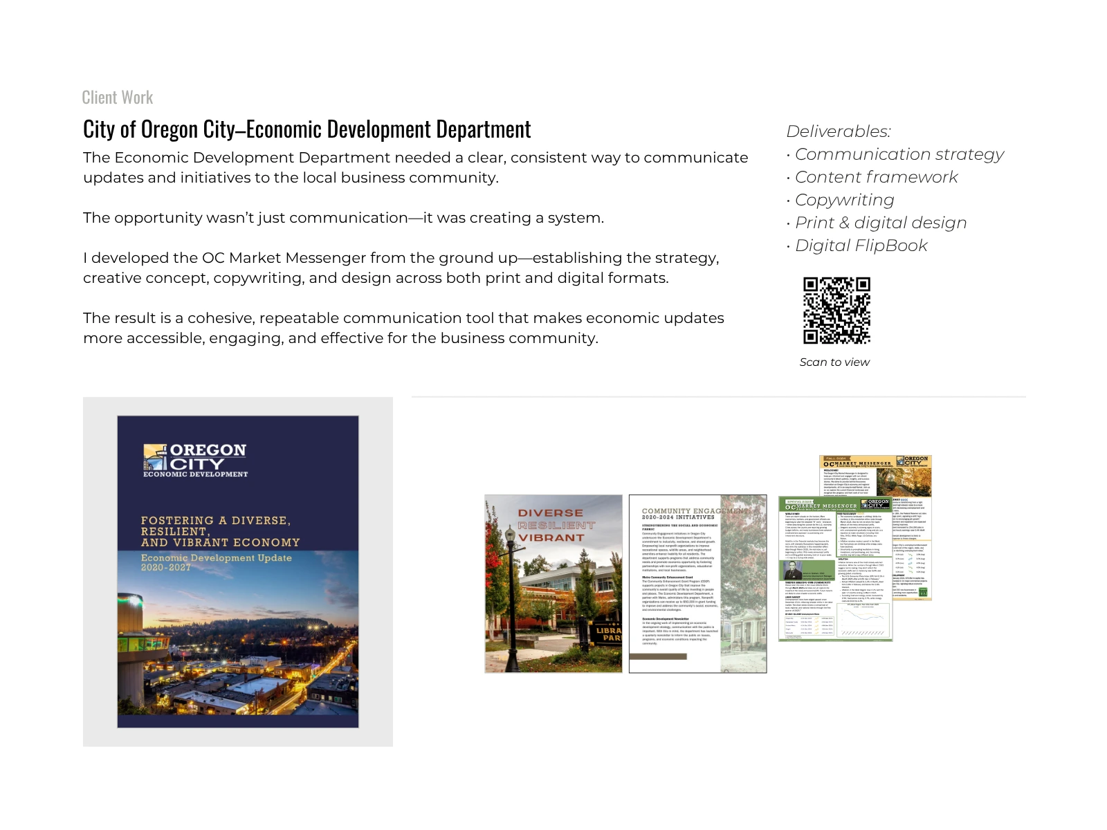 Strategy, copywriting, and design for a quarterly economic newsletter and high-end print update with interactive FlipBook.
