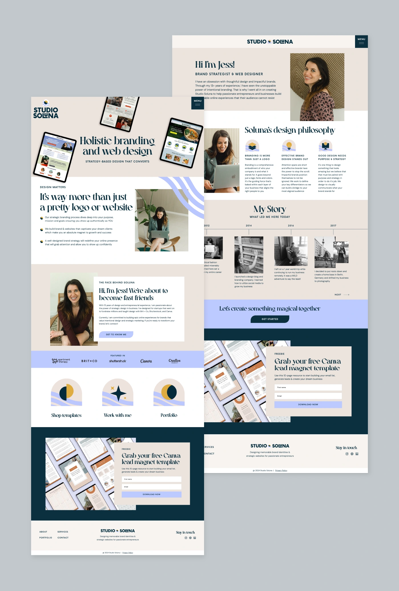 Brand identity and Showit website design for my own creative studio—minimal, expressive, and built to reflect soulful, strategic design.