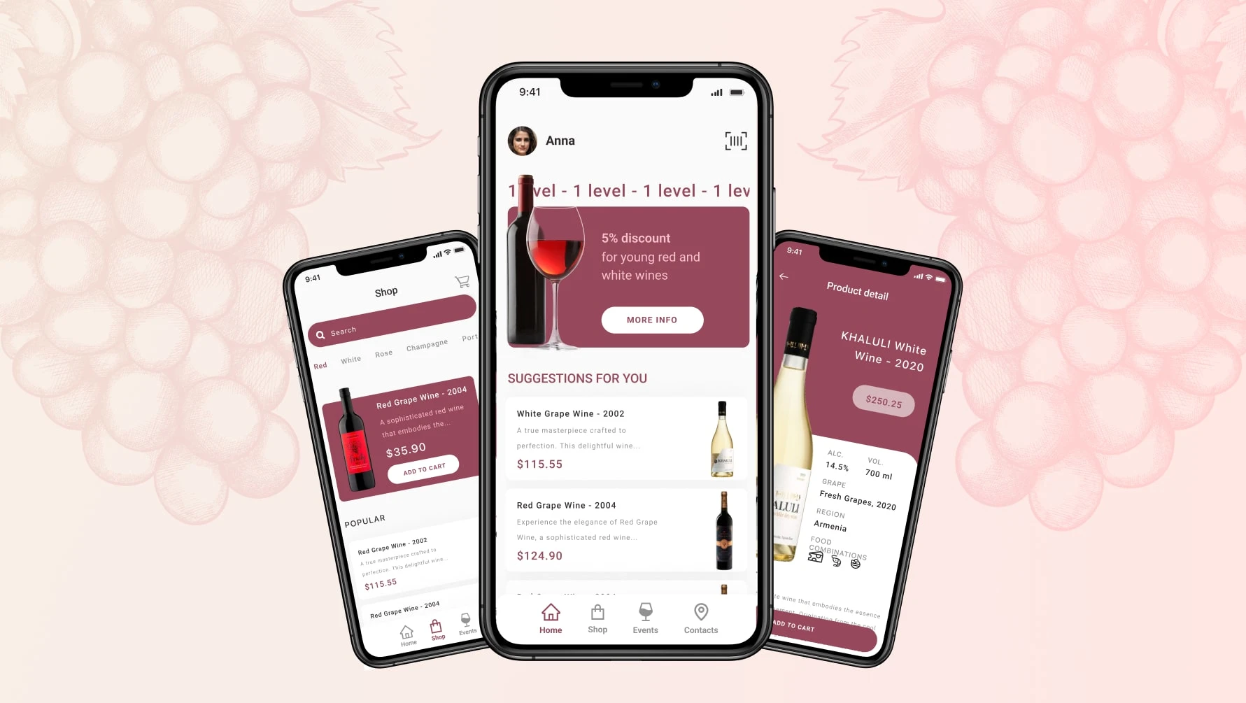 A mobile application created from the ground up to digitize an existing loyalty program for a wine brand. I designed a clear, intuitive experience that helps users browse wines, track loyalty points, view discount conditions, manage profiles, and complete purchases seamlessly.