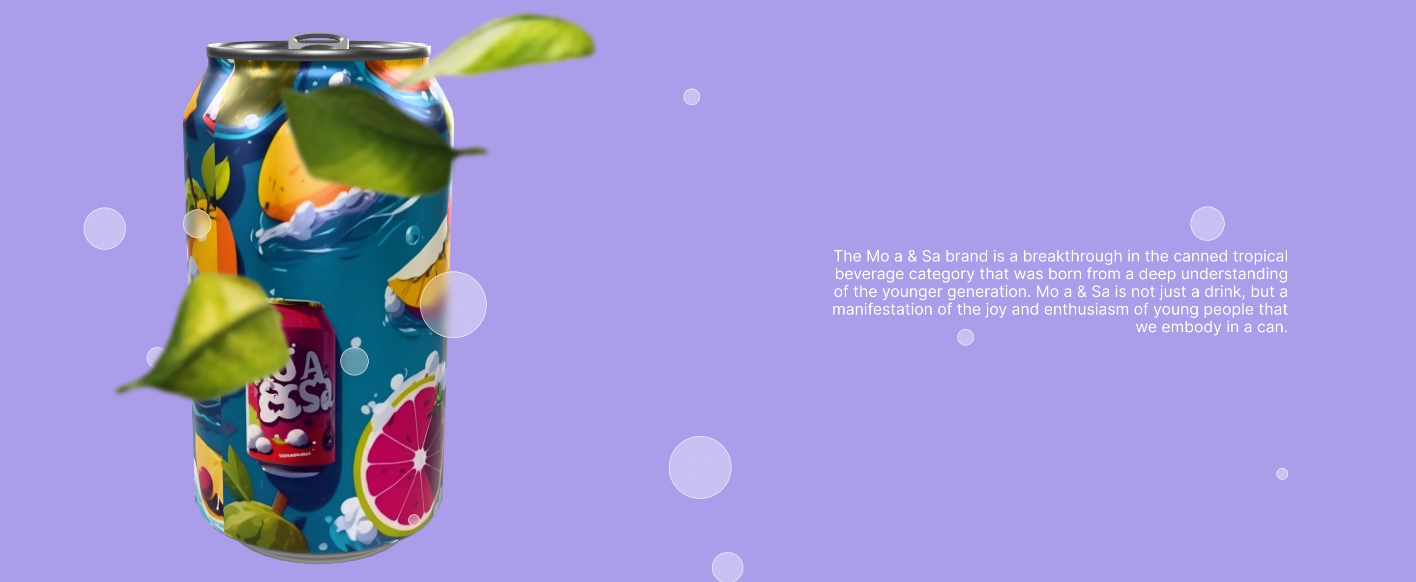 The Mo a & Sa brand is a breakthrough in the canned tropical beverage category that was born from a deep understanding of the younger generation.