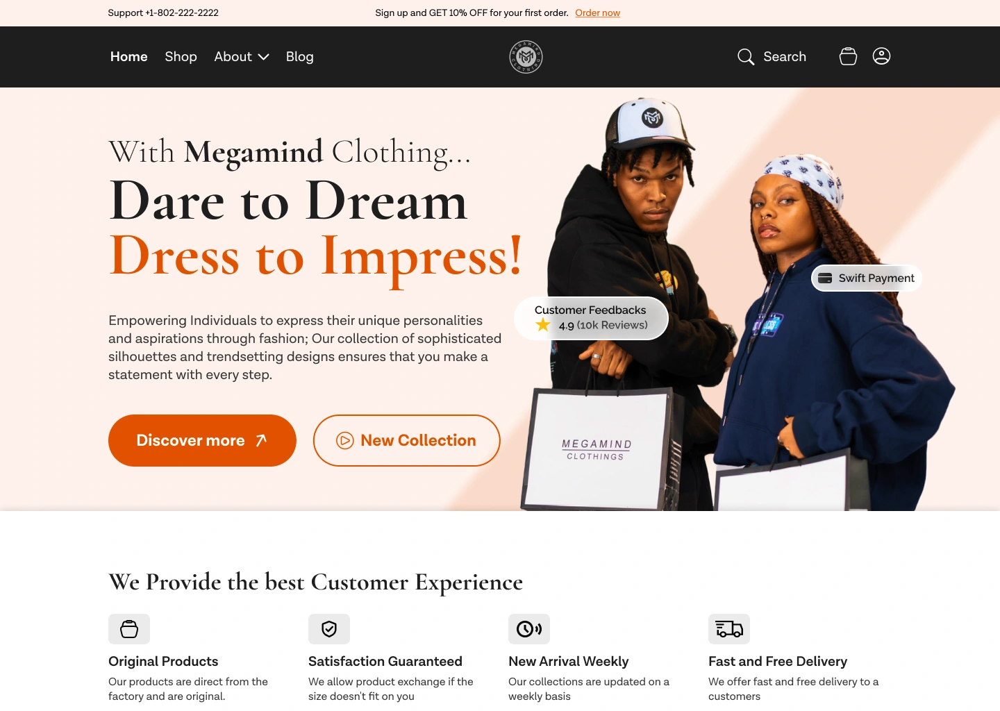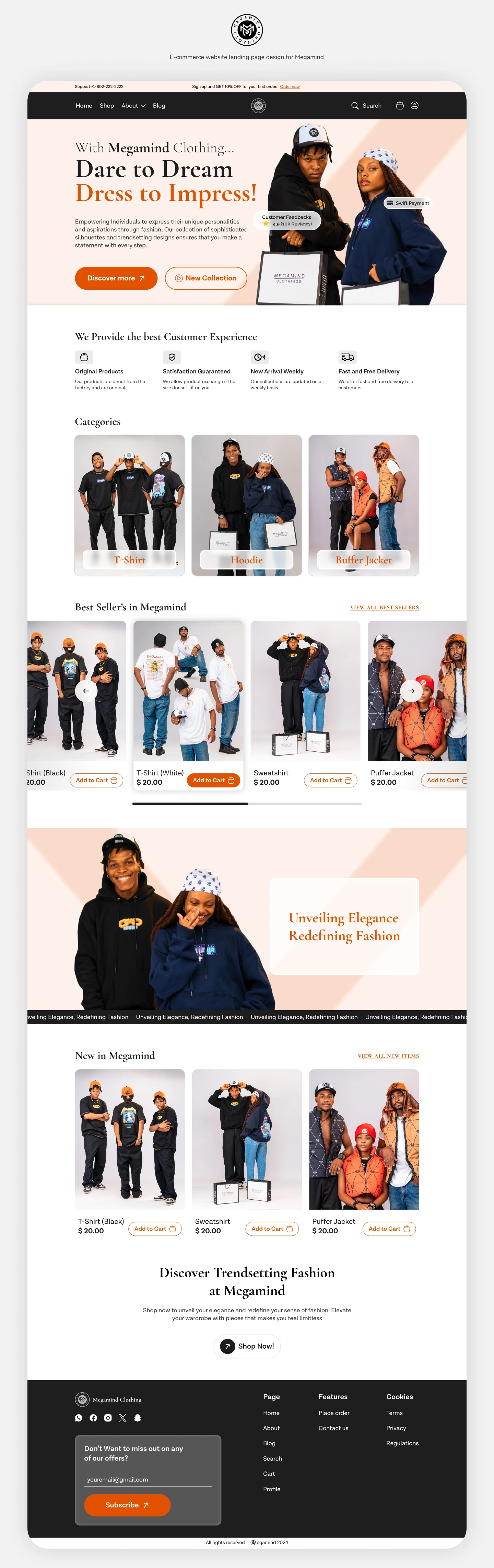 Figma-designed UI/UX for a fashion e-commerce platform focused on seamless online shopping experience and conversion rate optimization for clothing brands.