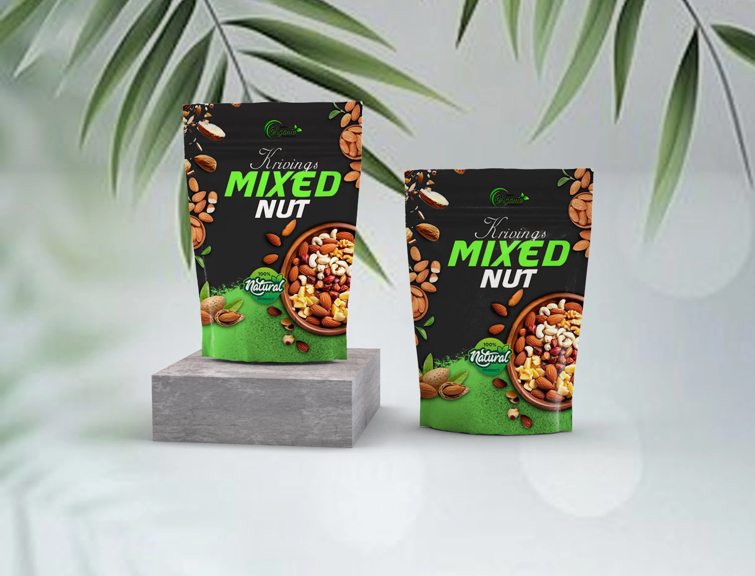 I was hired as a freelance designer to develop the complete branding package for Organic Krivings, a premium mixed nuts brand focused on health, freshness, and natural taste.