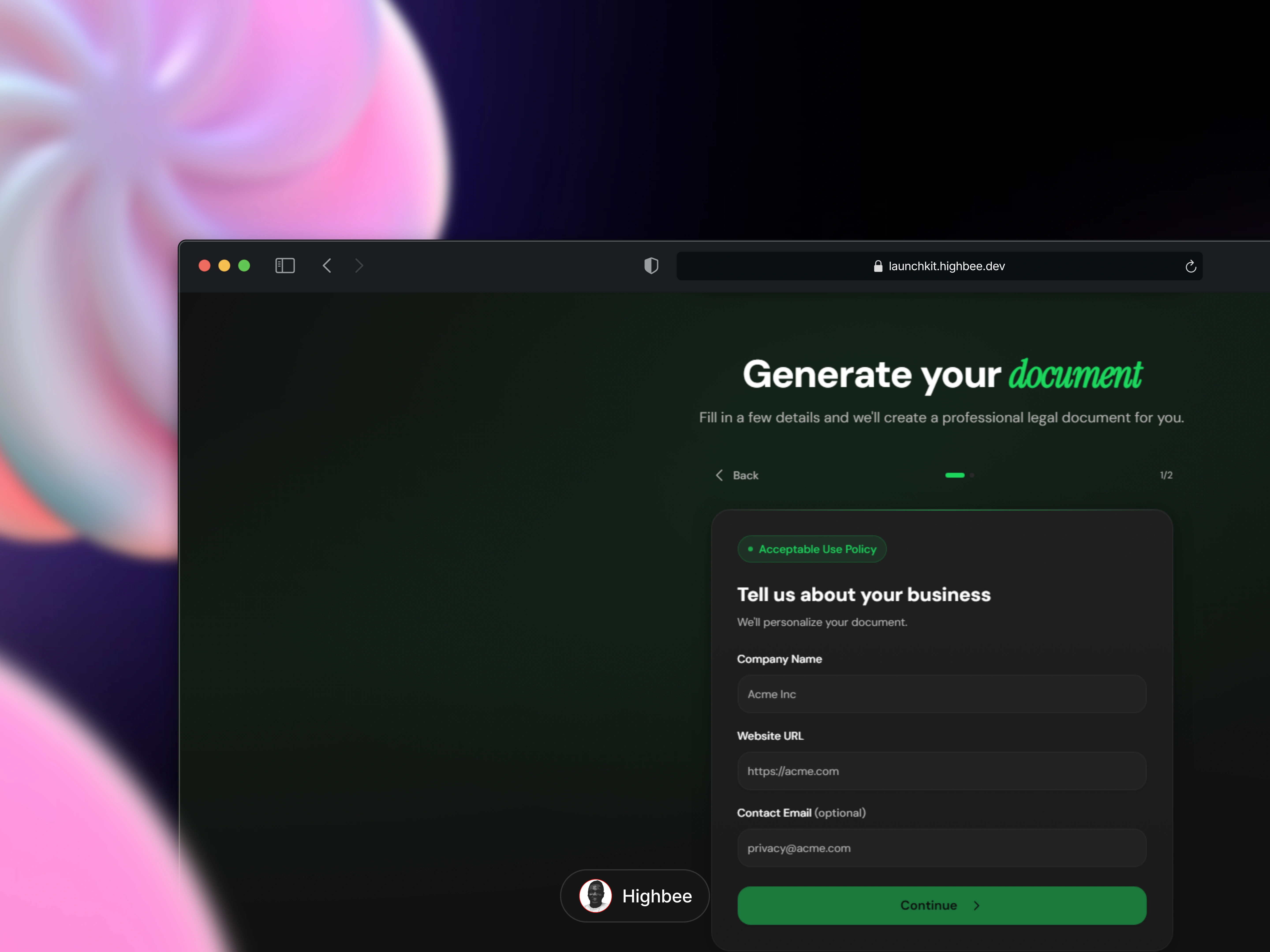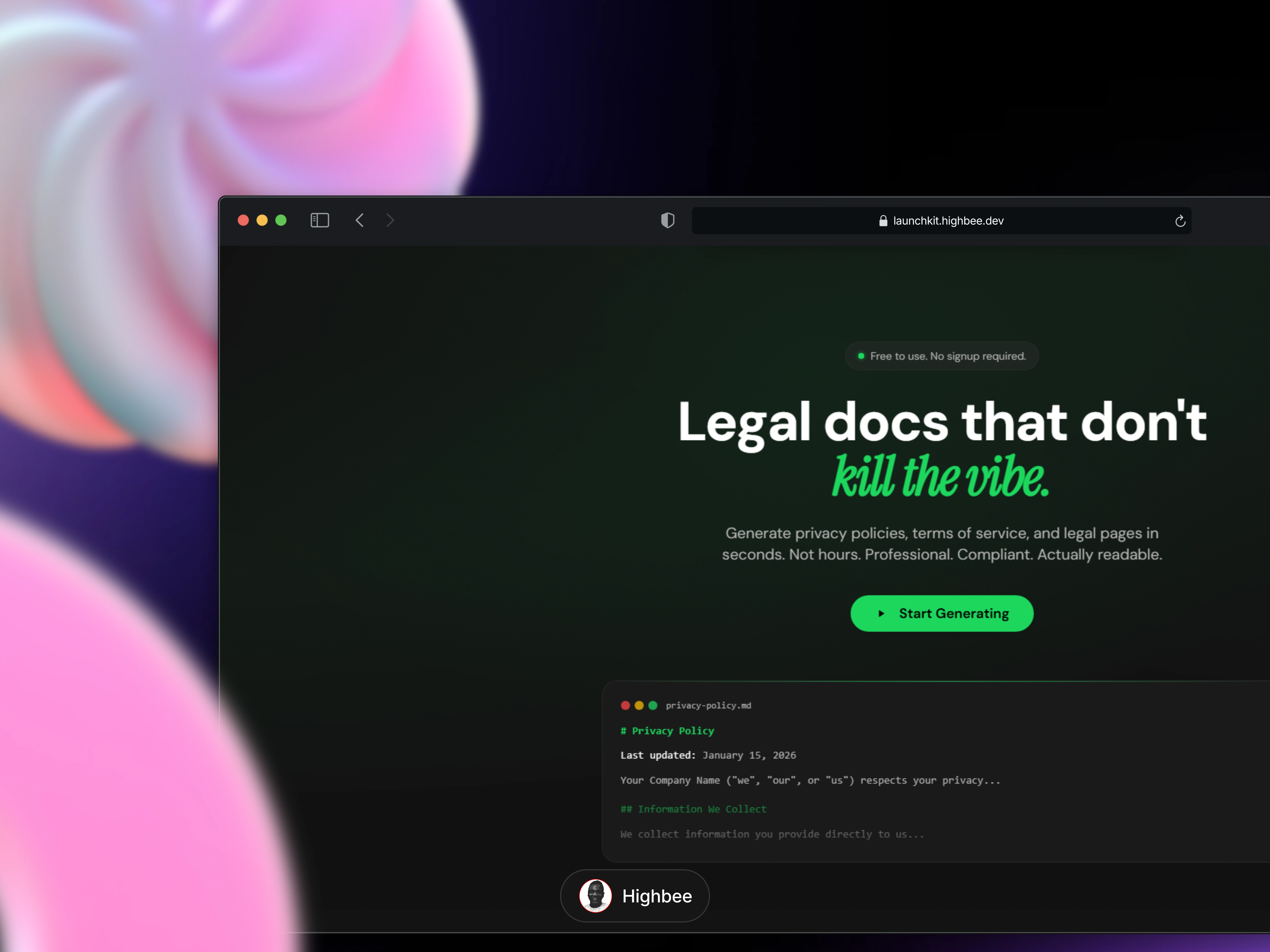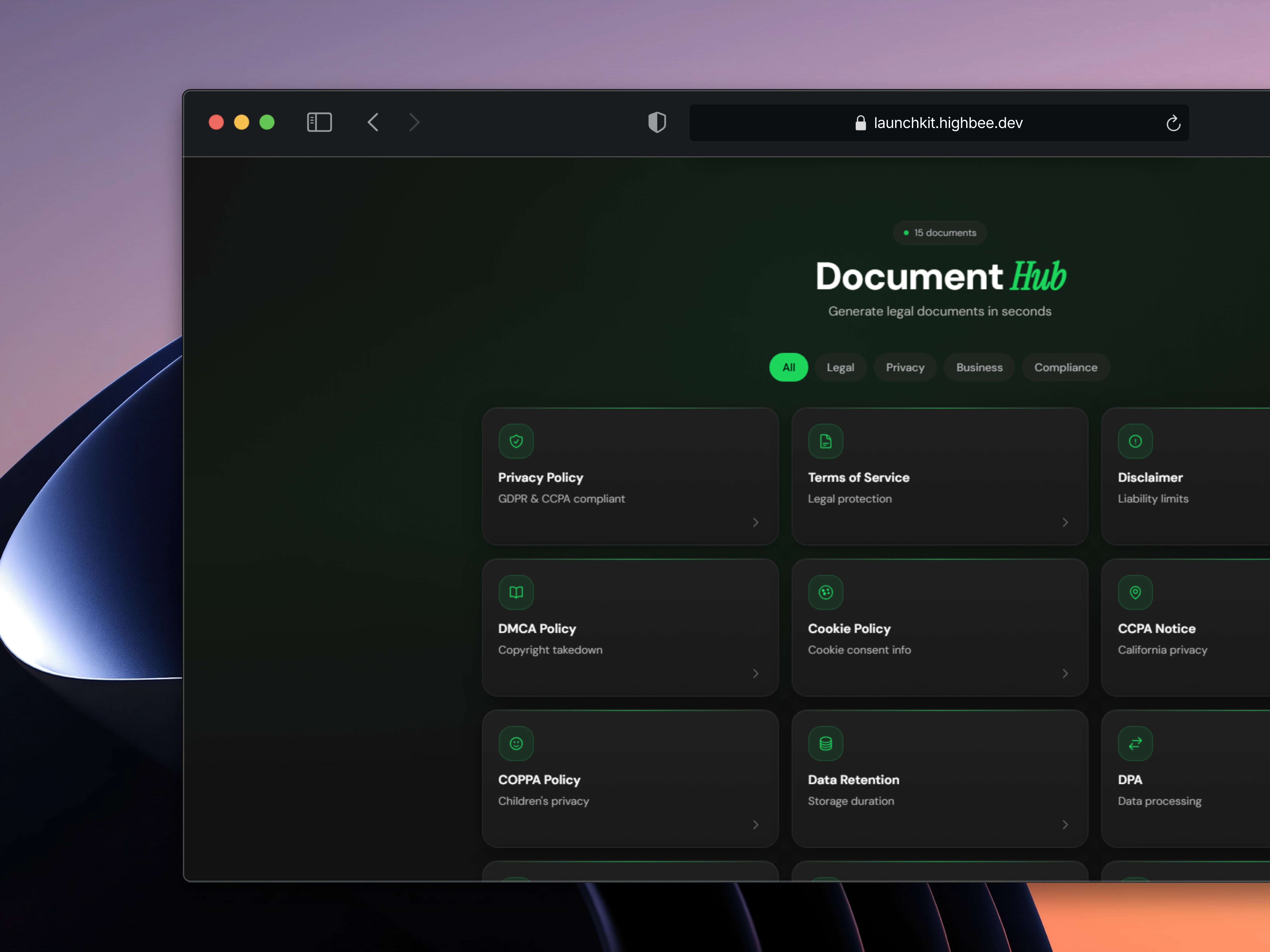 Developed LaunchKit, a legal-doc generator, optimizing for speed, UX, and mobile.