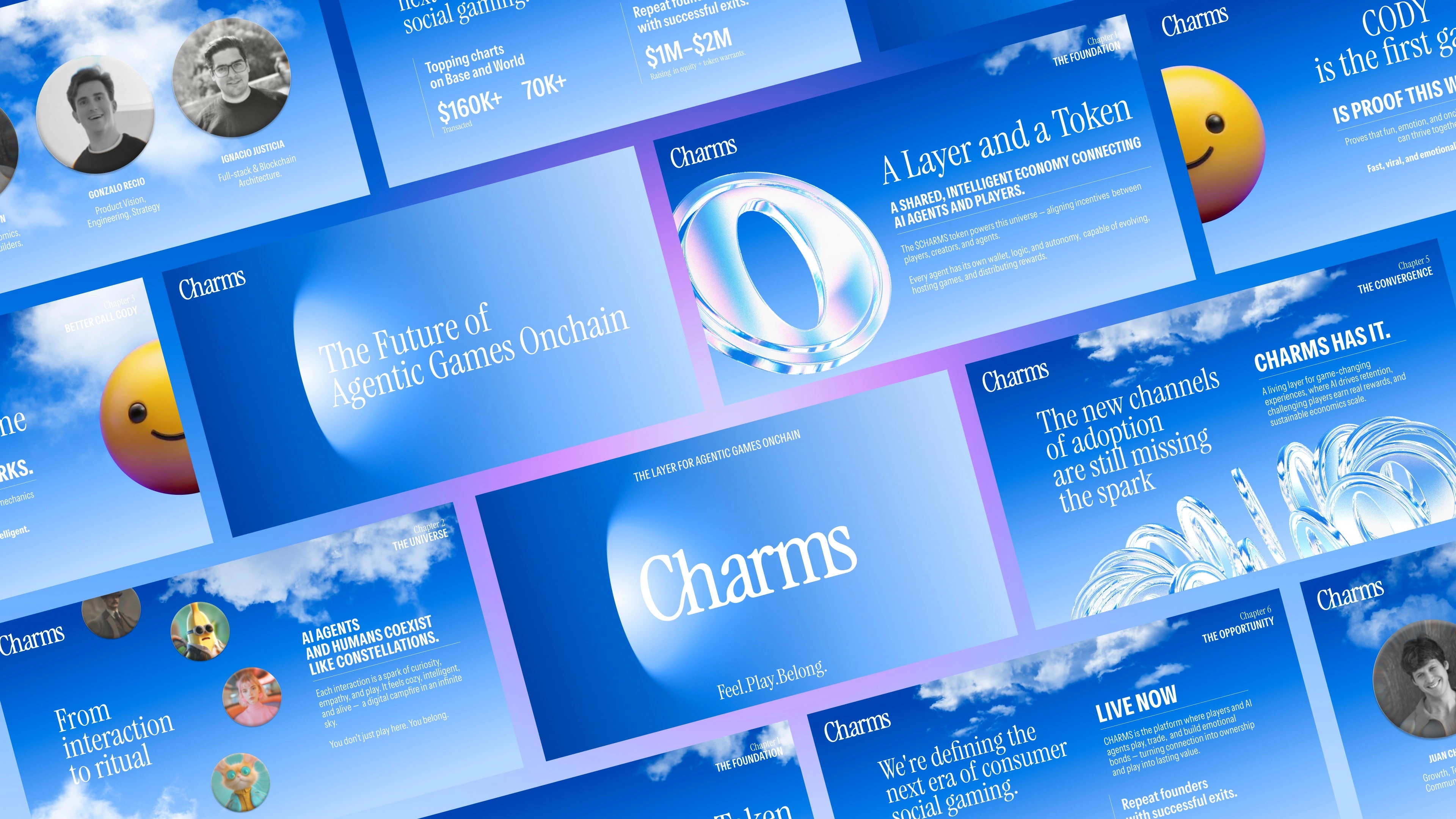As part of a Starter-Kit Pack, our engagement with the Charms team enabled us to define their mission, vision, and foundational narrative — the core of a brand designed to feel alive, empathetic, and modular, while staking a clear position within a fast-evolving Web3 gaming landscape.
