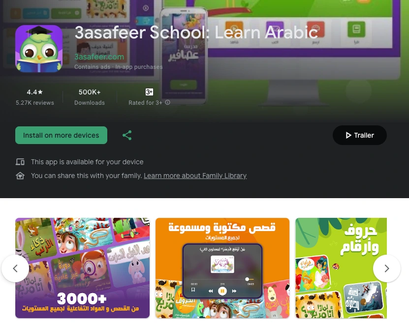 Developed 3asafeer School's Learn Arabic mobile app for Android and iOS.