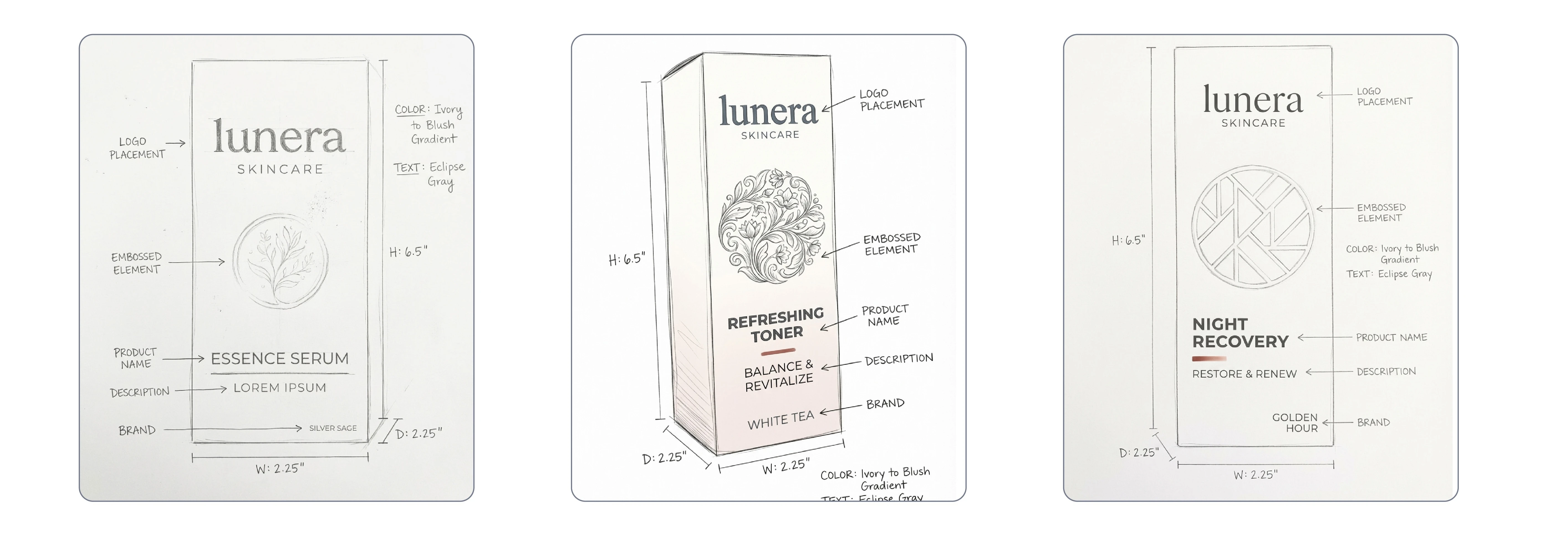 LUNERA (organic skincare) needed a brand identity and packaging system that matched its philosophy of natural renewal with a grounded, mindful visual presence. I led strategy, color system development, and packaging execution to create a cohesive brand language that feels modern, tactile, and deeply human.