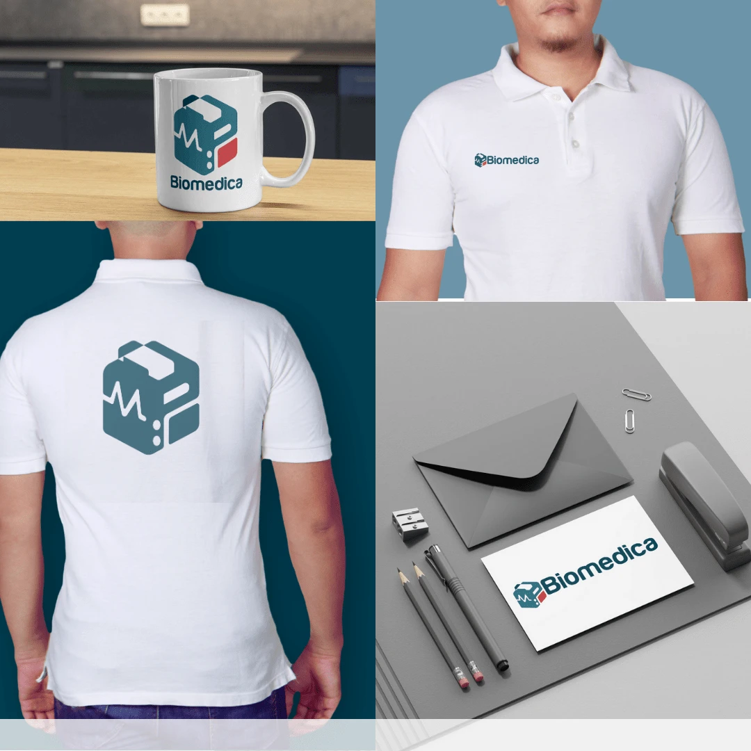 Logo designed for the visual branding of MP Biomedica, a Mexican company dedicated to repairing biomedical equipment in hospitals.