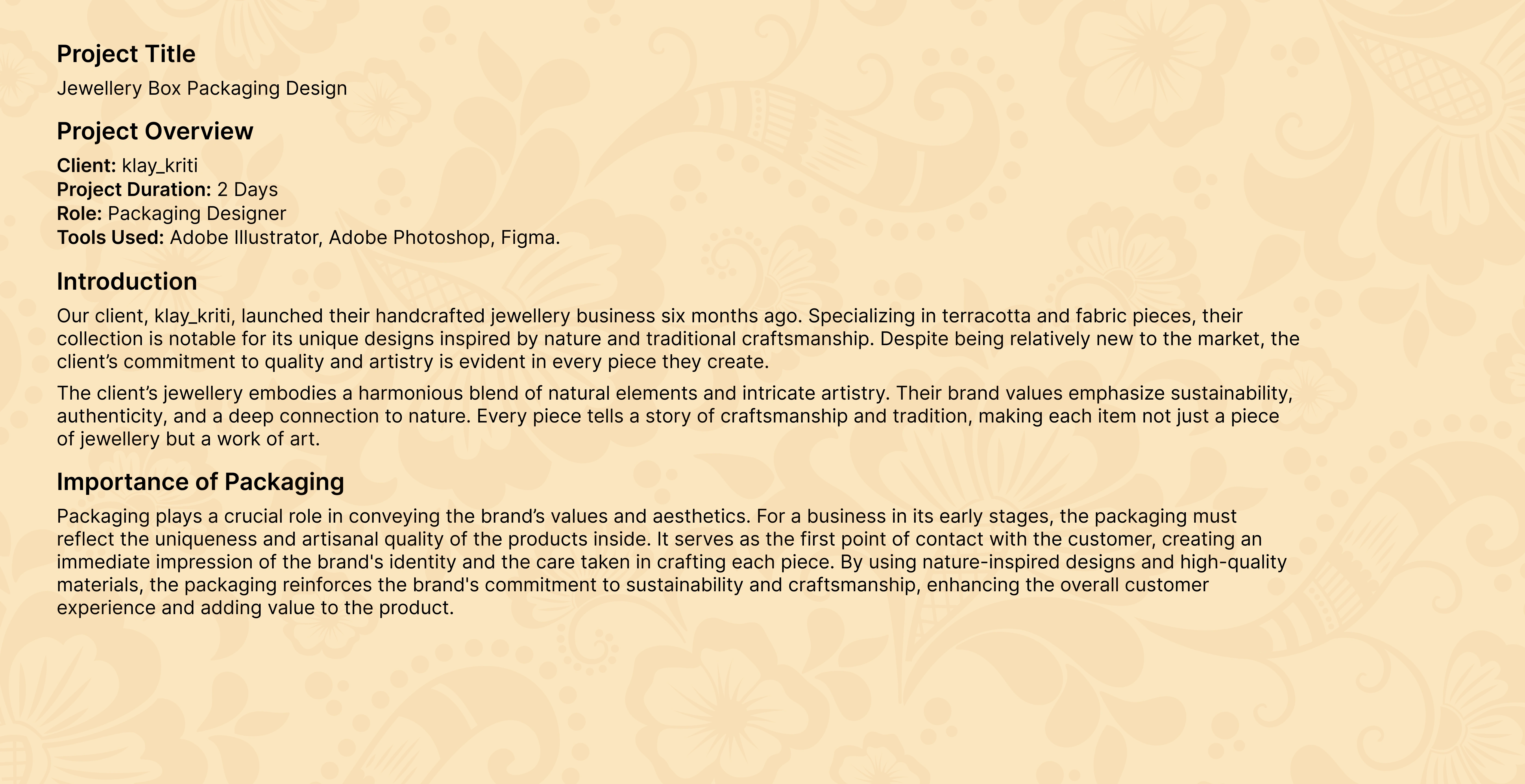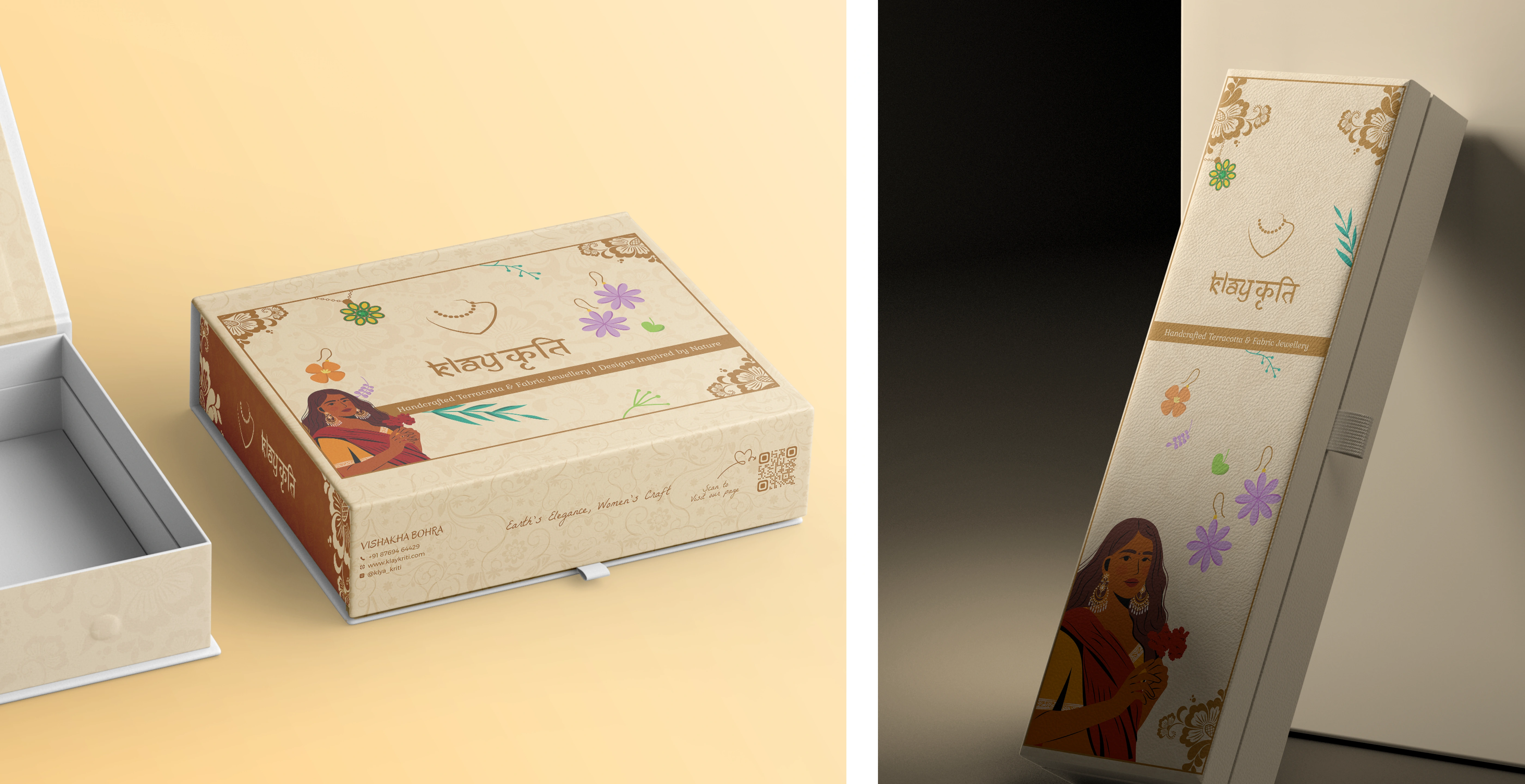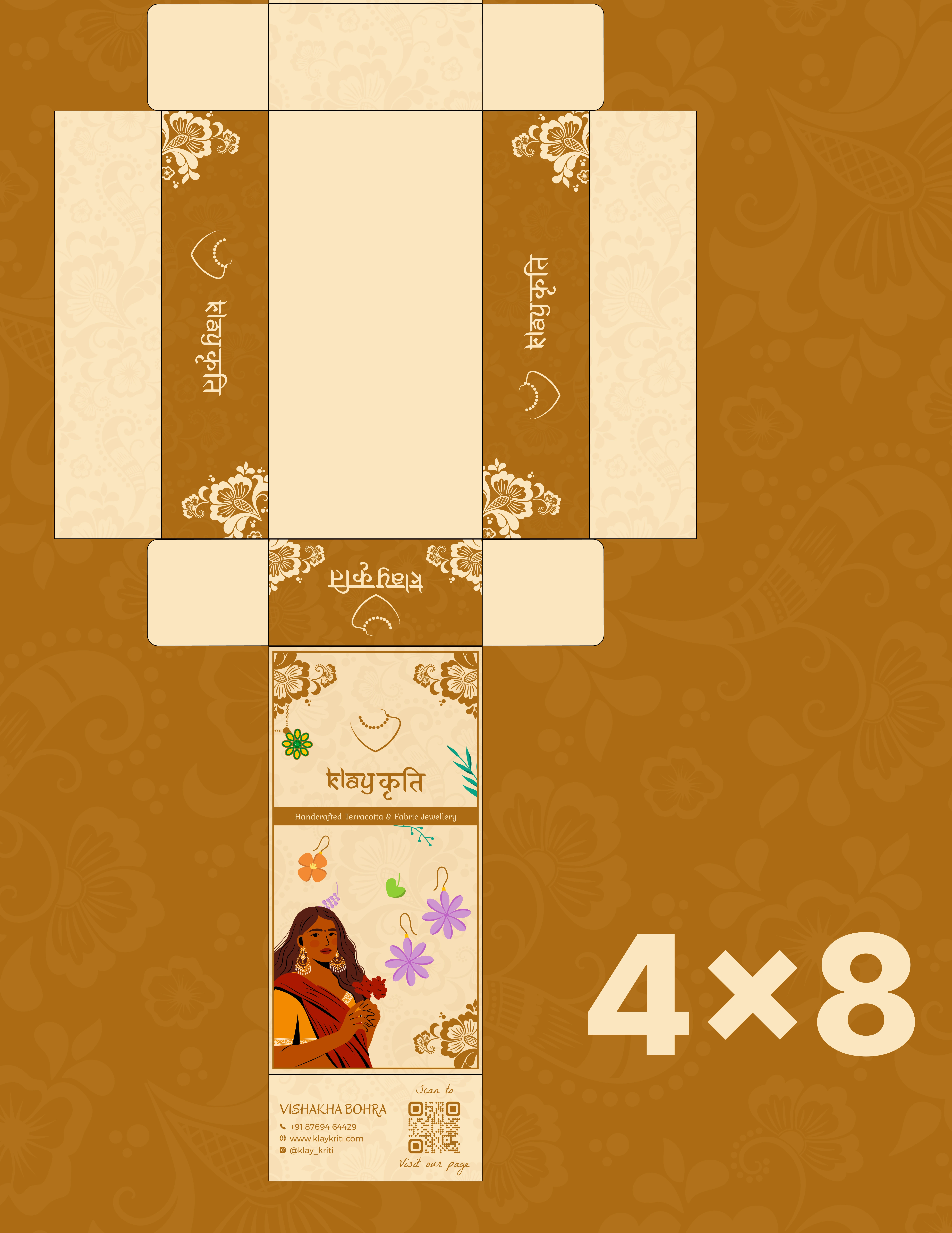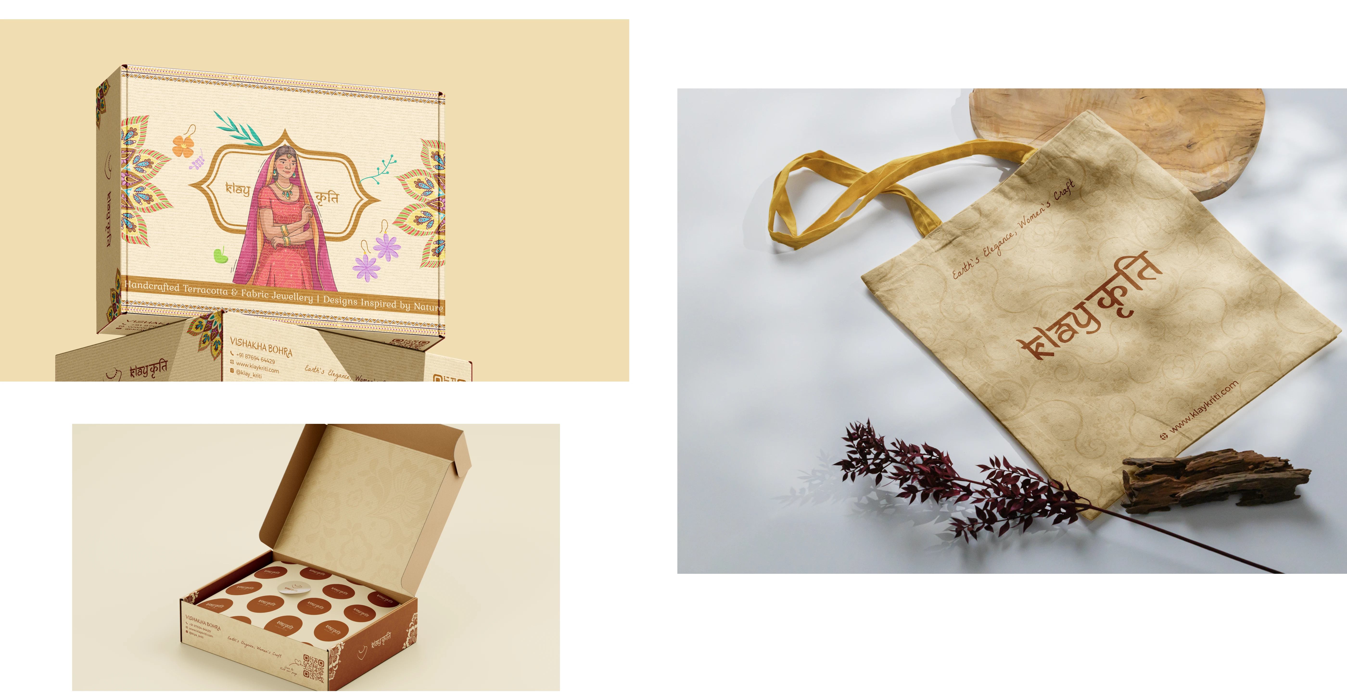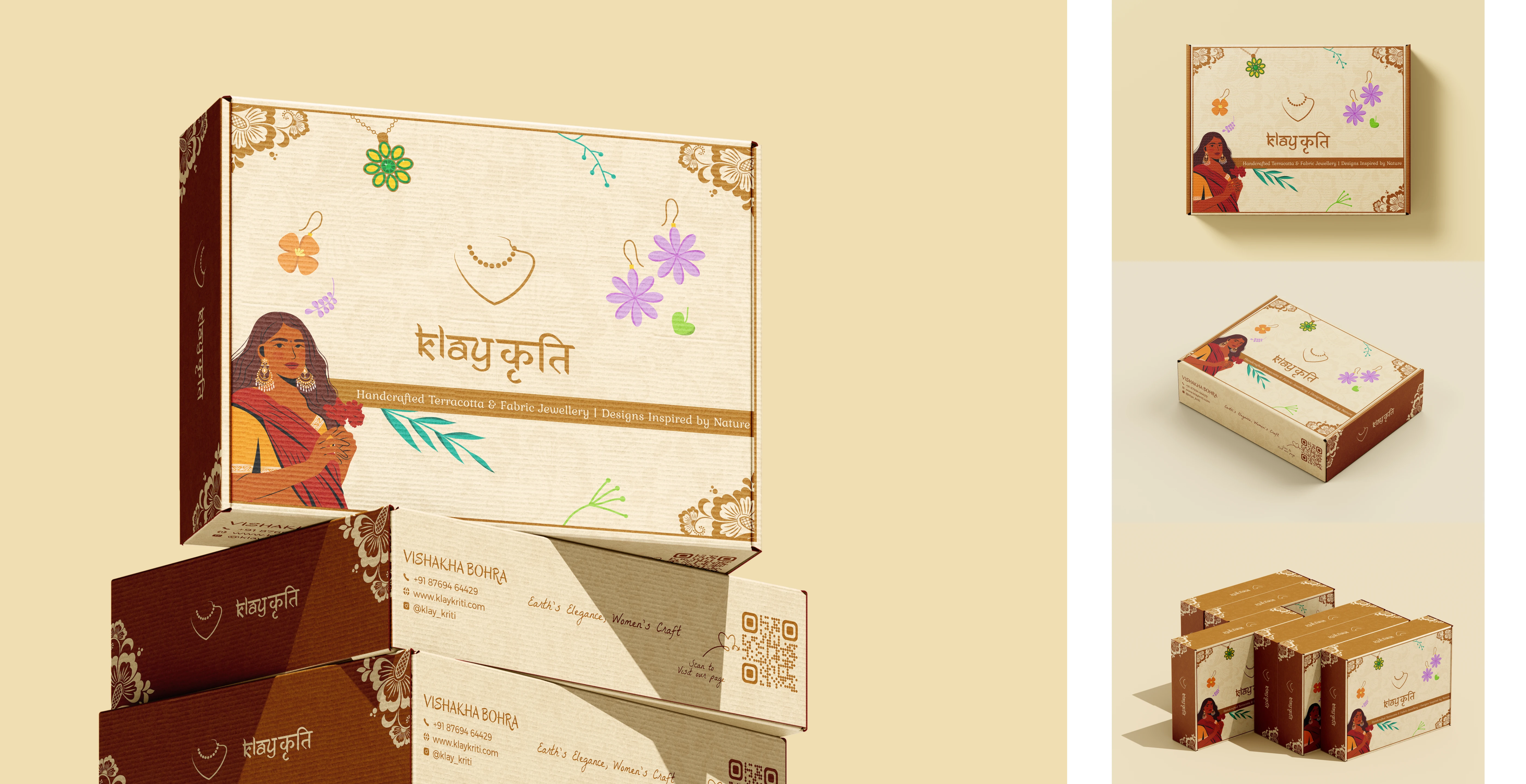 This project involved designing packaging for Klay Kriti, a brand specializing in handcrafted terracotta and fabric jewellery.