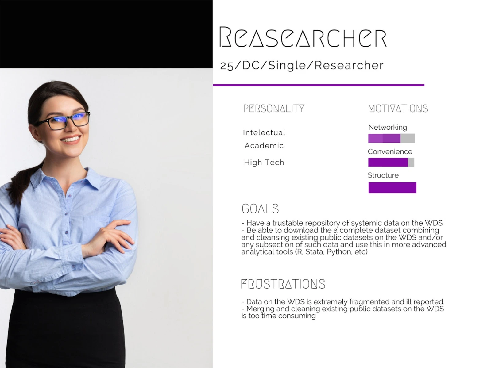 • Personas, user journey maps, use cases, proposed visualizations, and information architecture for the website