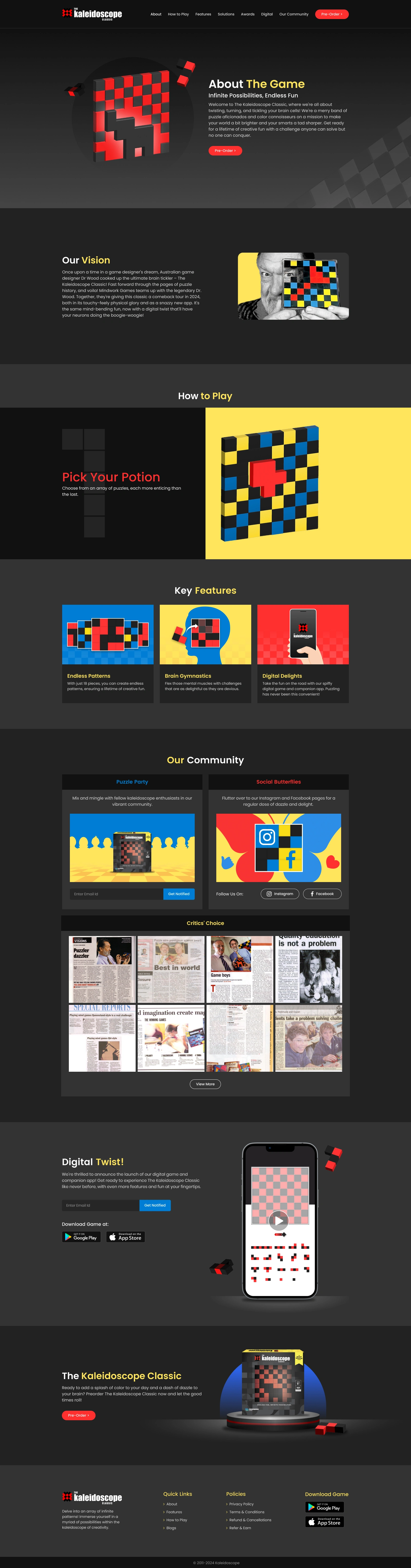 Brought a bold Figma design to life on Wix for Kaleidoscope Classic, blending vibrant visuals with a clean, conversion-focused layout.