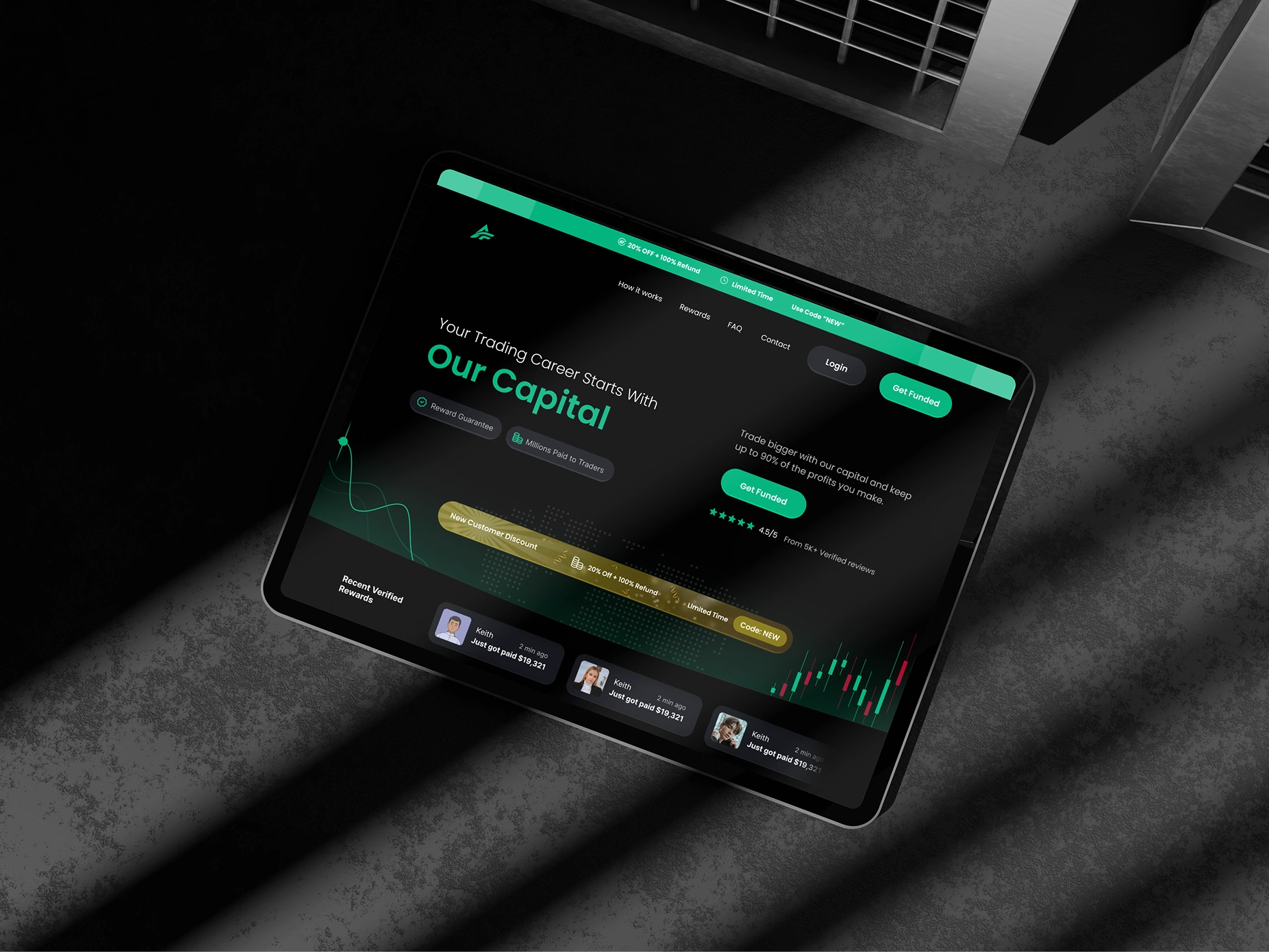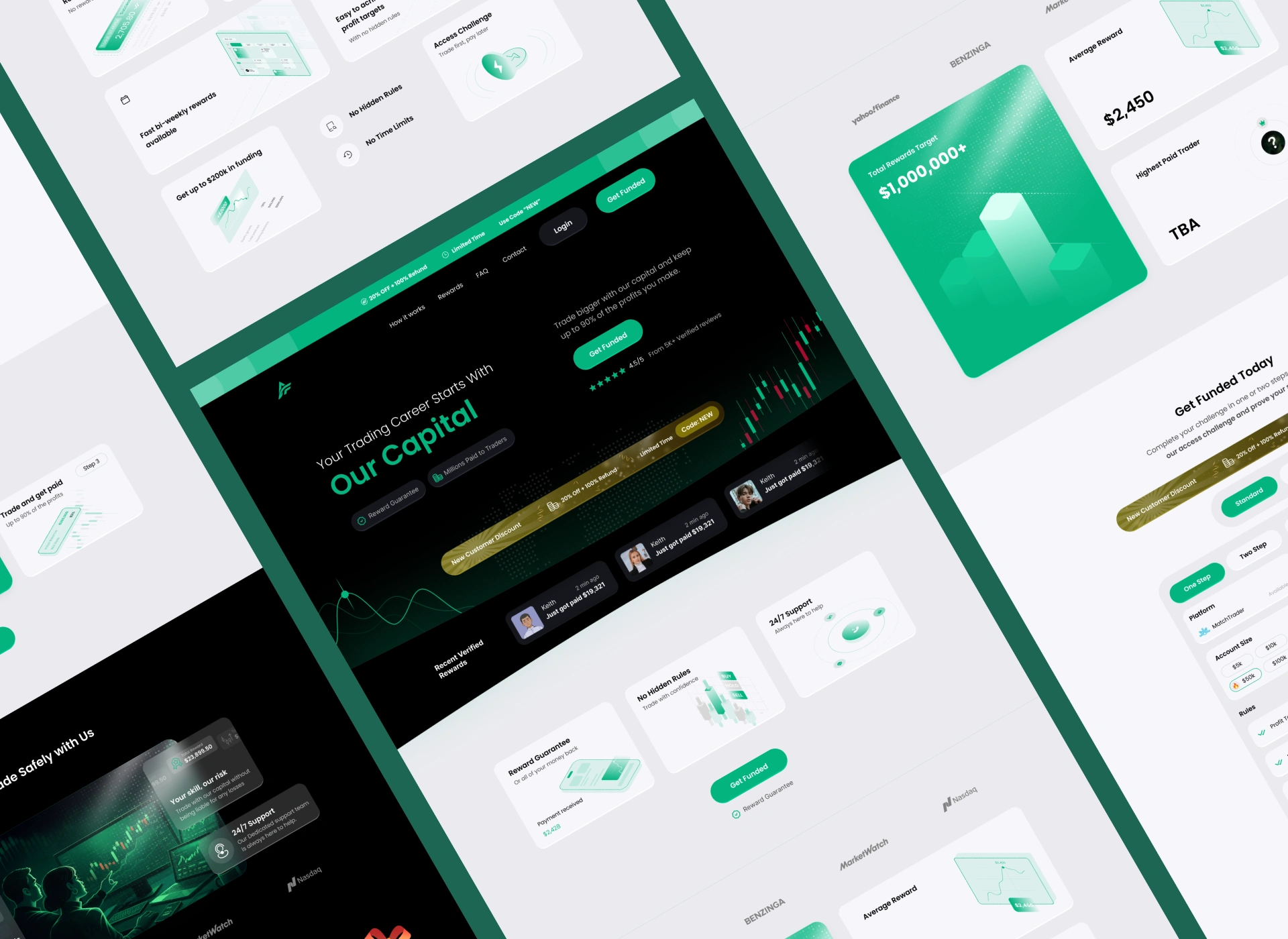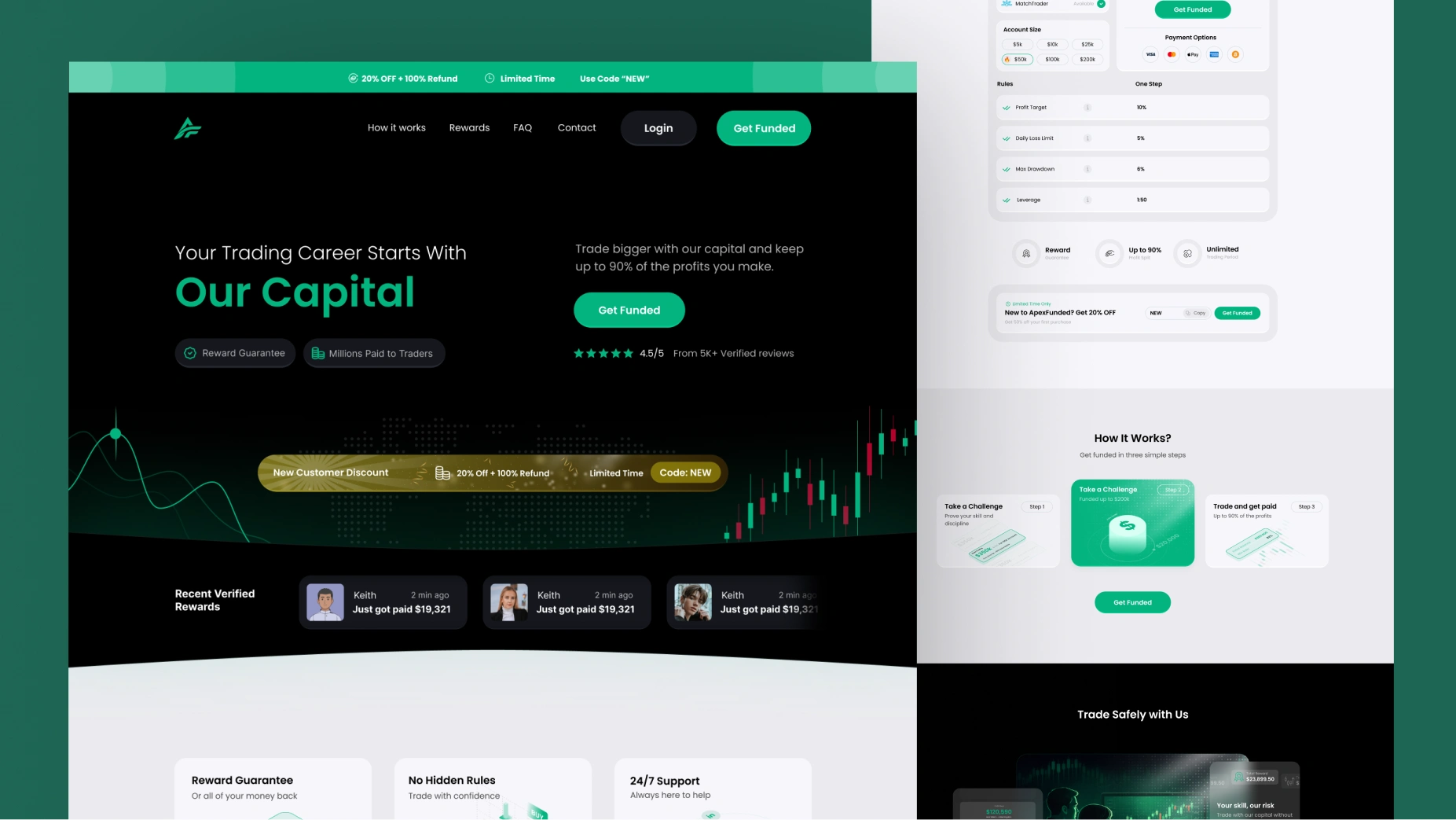 ApexFunded is a premier name in the futures prop trading industry. Starting with only their existing logo and core color, we were tasked with designing and developing a comprehensive digital presence from the ground up. We designed the entire interface in Figma and developed the final platform in Webflow, defining the typography and custom graphics to transform their brand into a high-authority, institutional powerhouse.