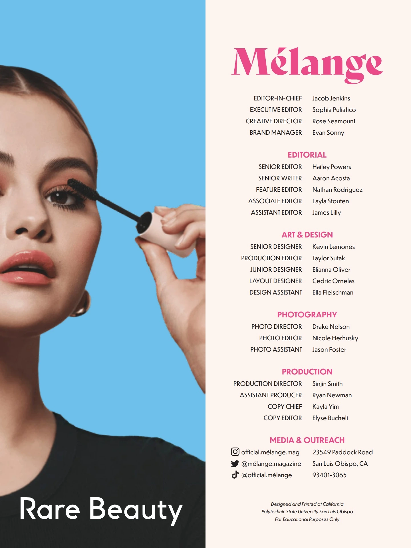 Melange is an 8-page magazine I created in a senior-level design course at Cal Poly San Luis Obispo.