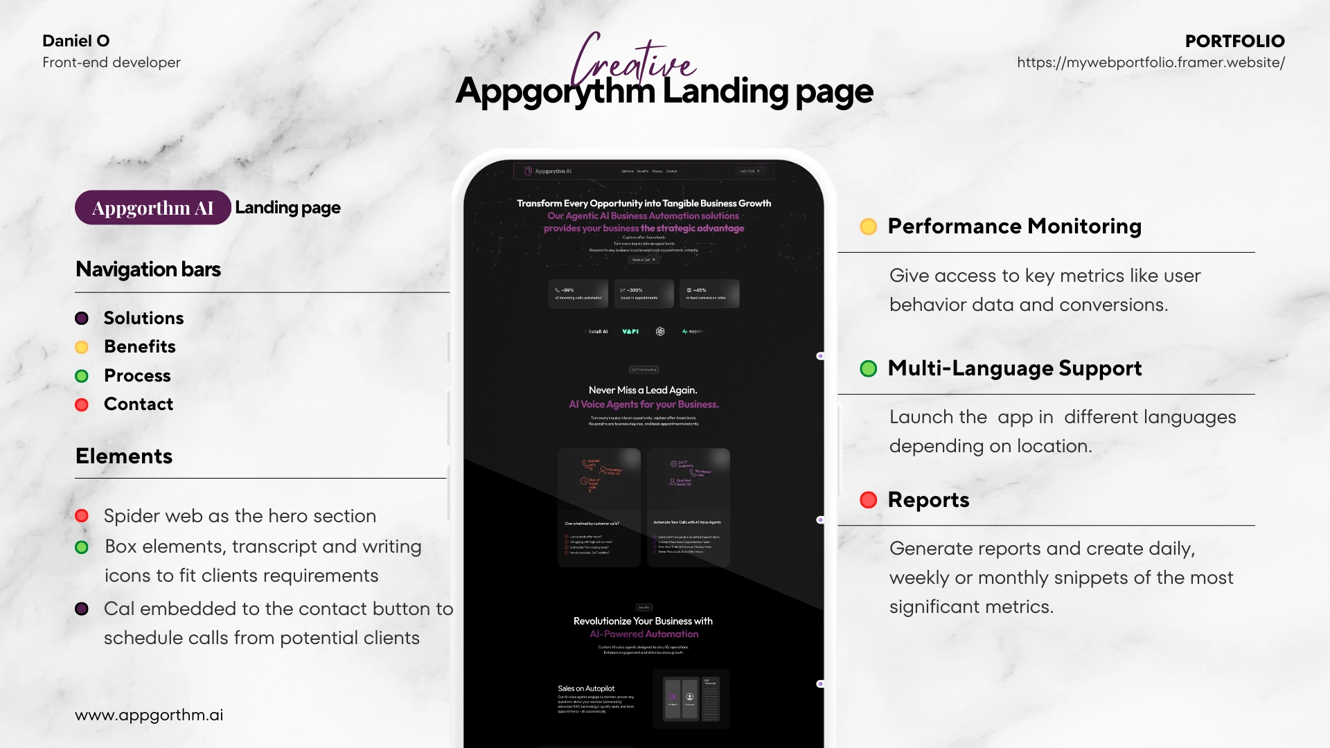 I designed and developed this site to powerfully showcase an AI voice assistant that automates business calls and boosts lead conversion. The layout explains benefits (24/7 call handling, auto bookings, appointment growth) and features bold calls-to-action. The modern, mobile-friendly design builds credibility and encourages more sign-ups for calls and consultations.