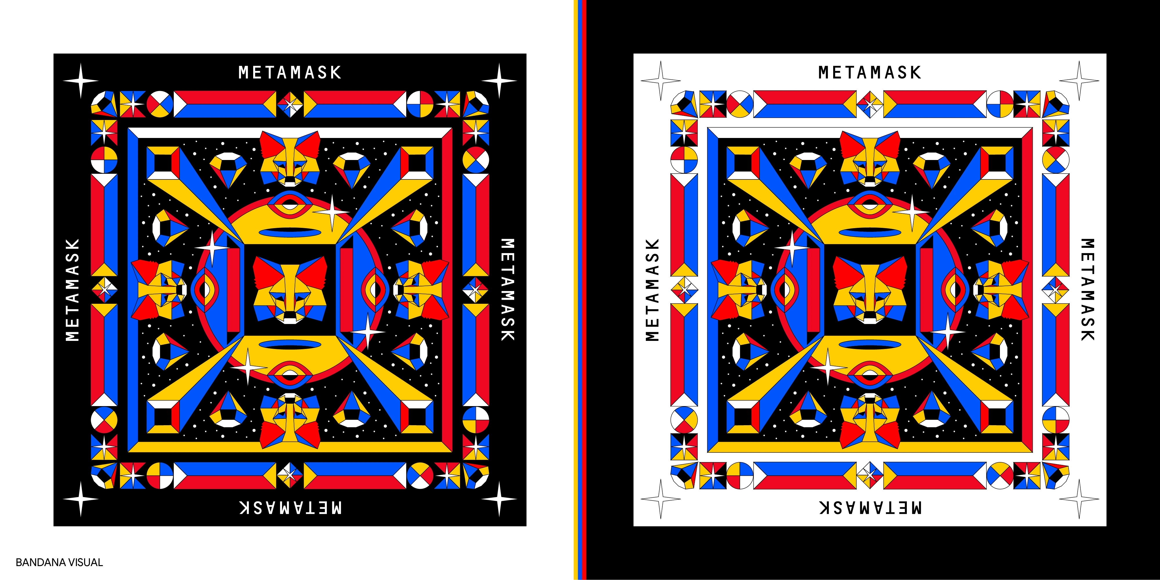 A visual system to compose the different garments, blending the colors of Colombia with visuals representative of MetaMask and the Web3 space.