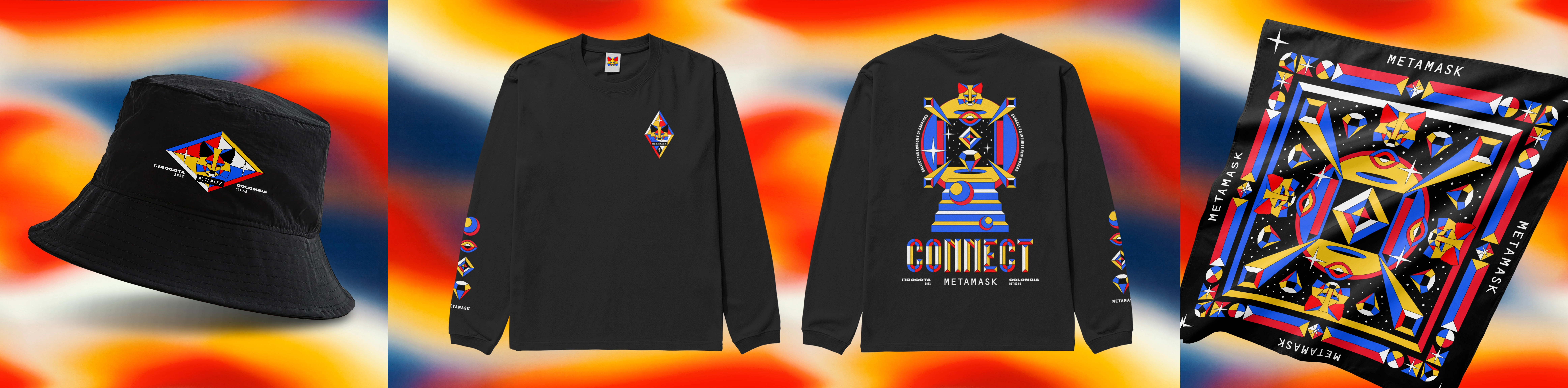 Merch collection for MetaMask at DEVCON and ETH Bogotá.