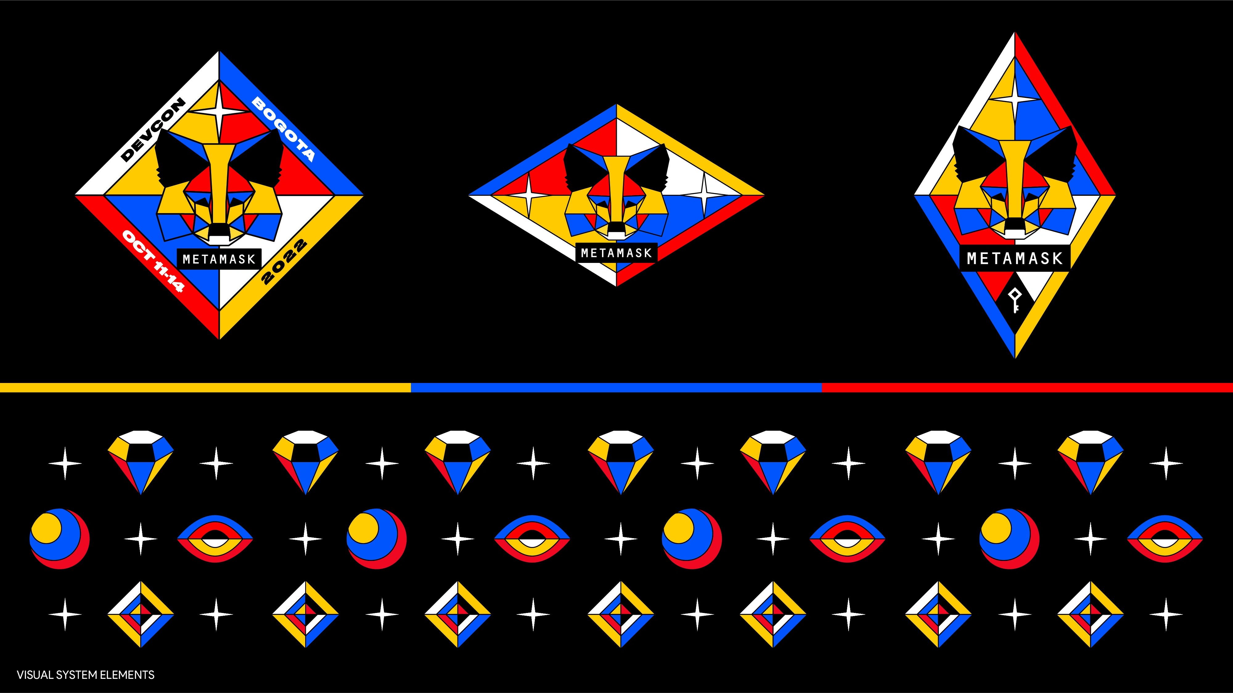 A visual system to compose, blending the colors of Colombia with visuals of MetaMask and the Web3