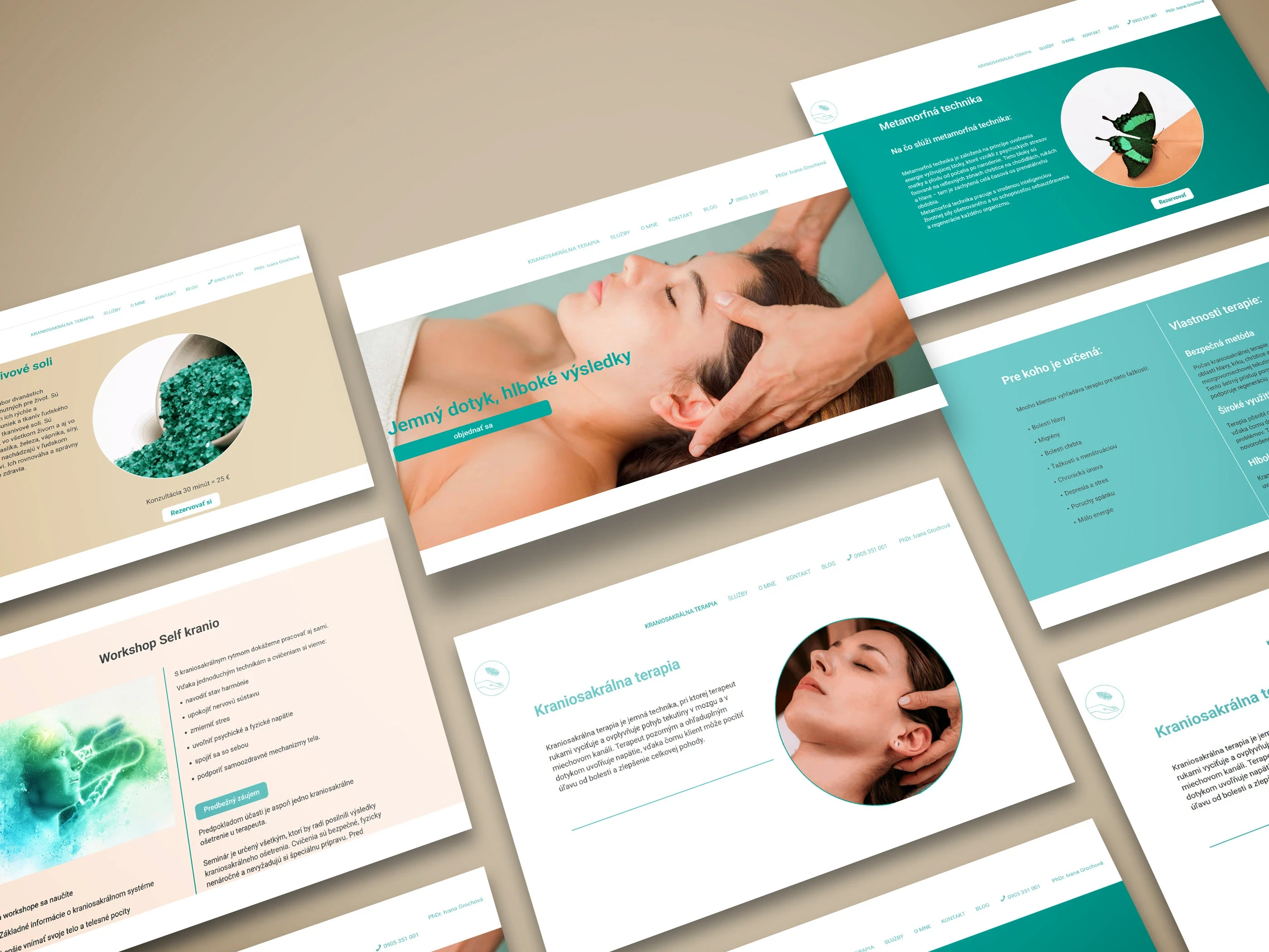 Brand identity and website design for a craniosacral therapy practice with calm colors, soft shapes and a clear, trustworthy presentation.