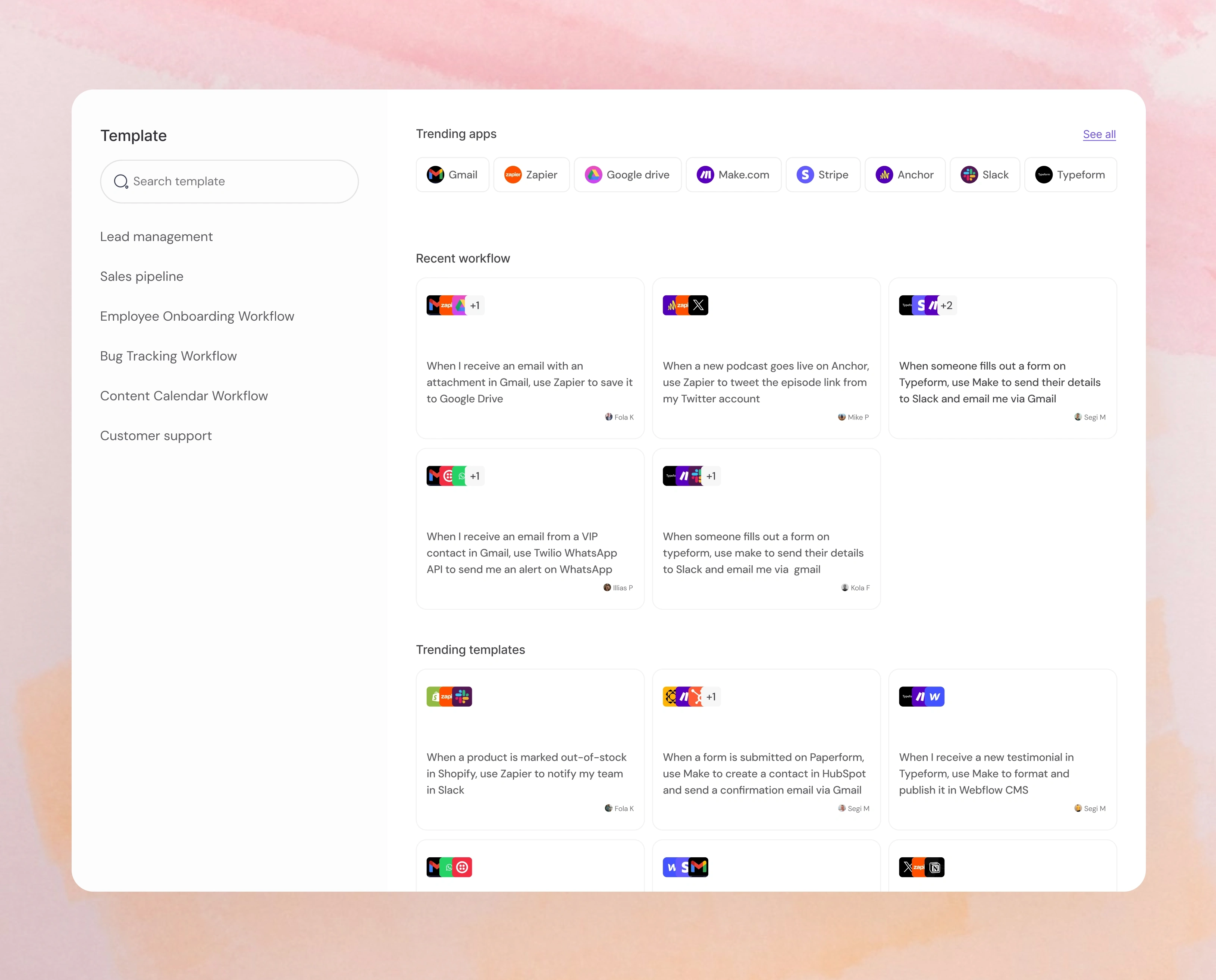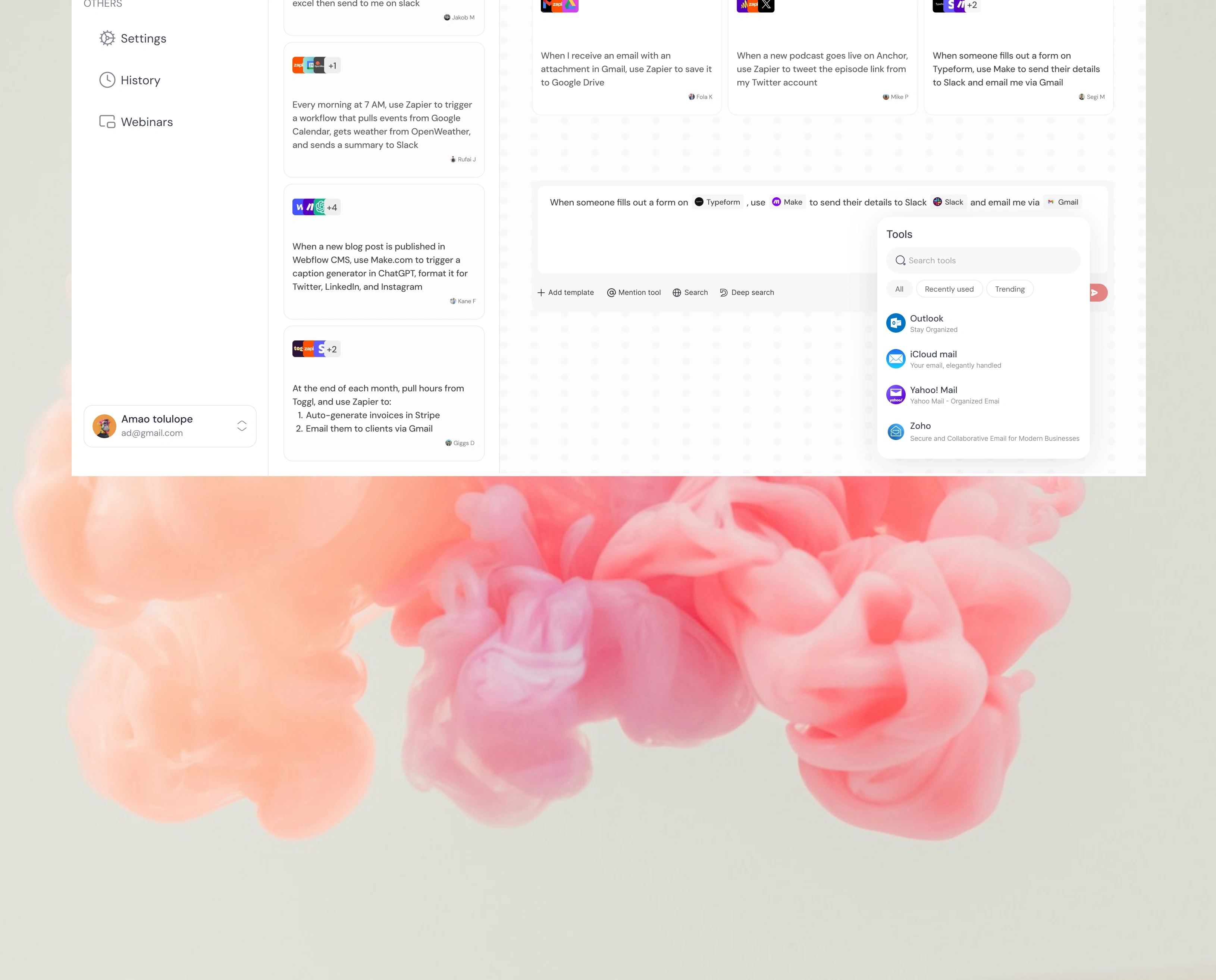 The design combines clarity, familiarity, and social validation to reduce the intimidation of automation tools. By structuring workflows around recognizable apps, simple language, and curated templates, the product lowers the barrier for entry while encouraging exploration and adoption.