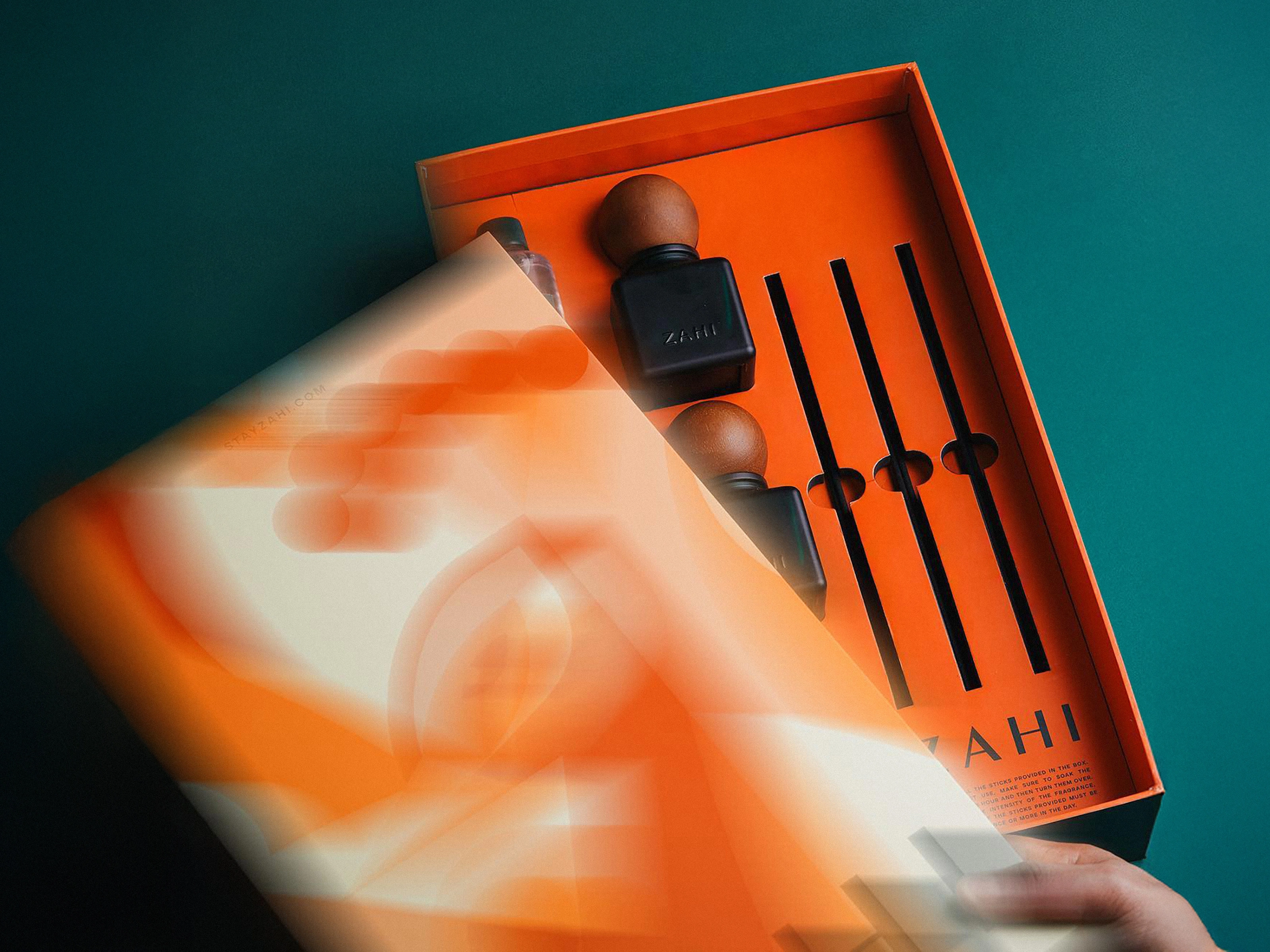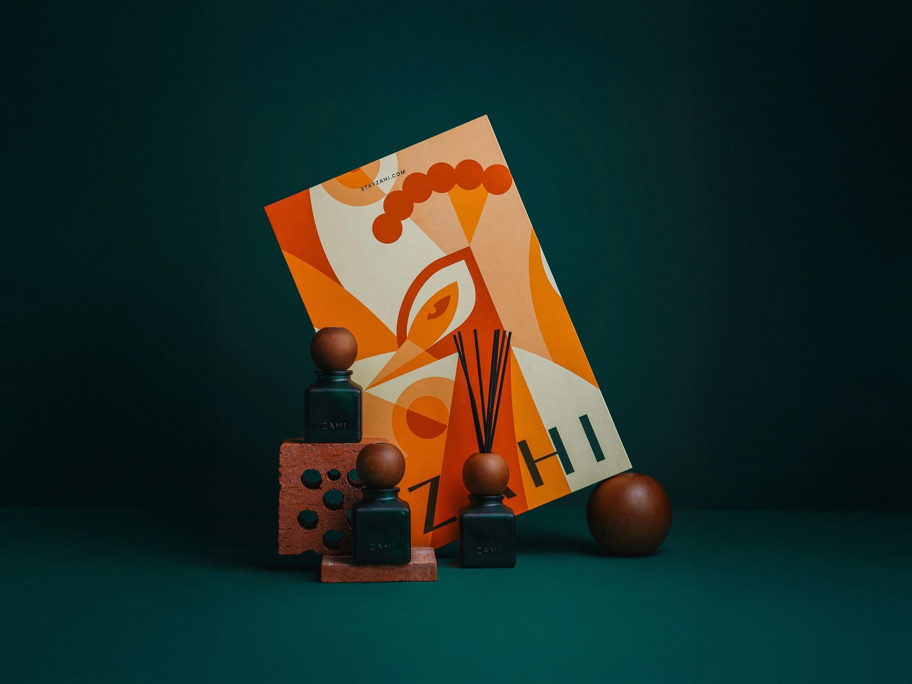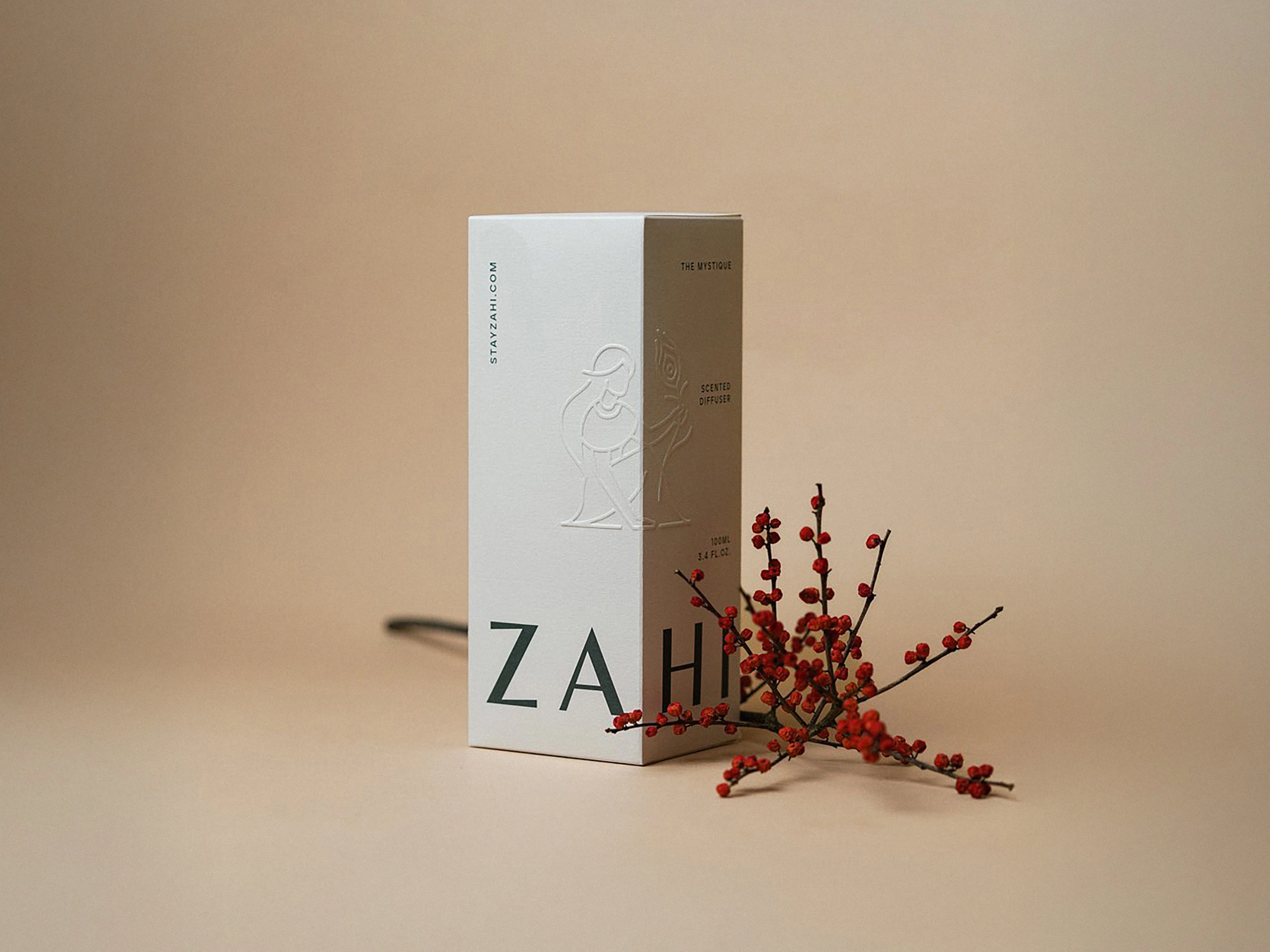 ZAHI is a refined and contemporary brand for scented diffusers and candles, built around elegance, symbolism, and visual harmony. I created the full visual identity, including the logo, packaging, graphic system, and a distinctive illustration style rooted in modern geometric forms. Subtle, meaningful details run throughout the branding, creating a cohesive experience that balances sophistication with character.