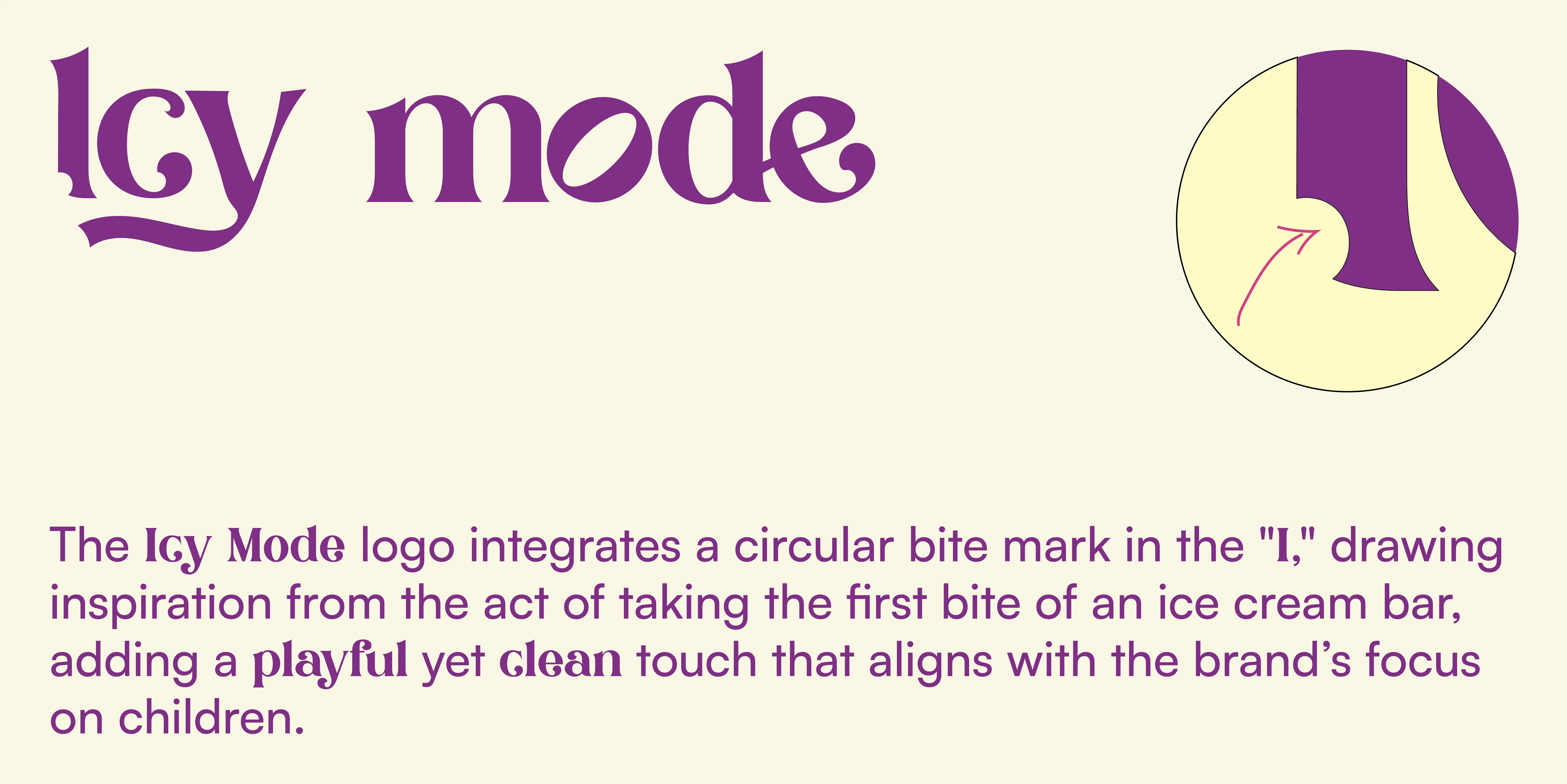 The logo revolves around the idea of childhood joy, represented by the ice cream bite in the "I." This playful element subtly captures the excitement and wonder of childhood while maintaining a clean, modern aesthetic. The simplicity of the design ensures versatility across all branding materials.