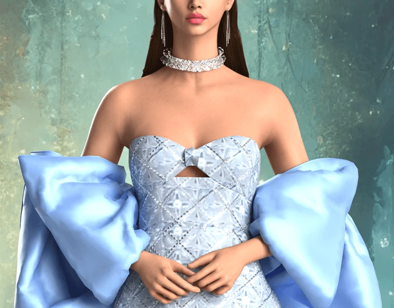 Recreated a glamorous ramp dress from Pinterest with embroidery, structured bodice & flowing cape—delivering a detailed 3D garment that thrilled the buyer