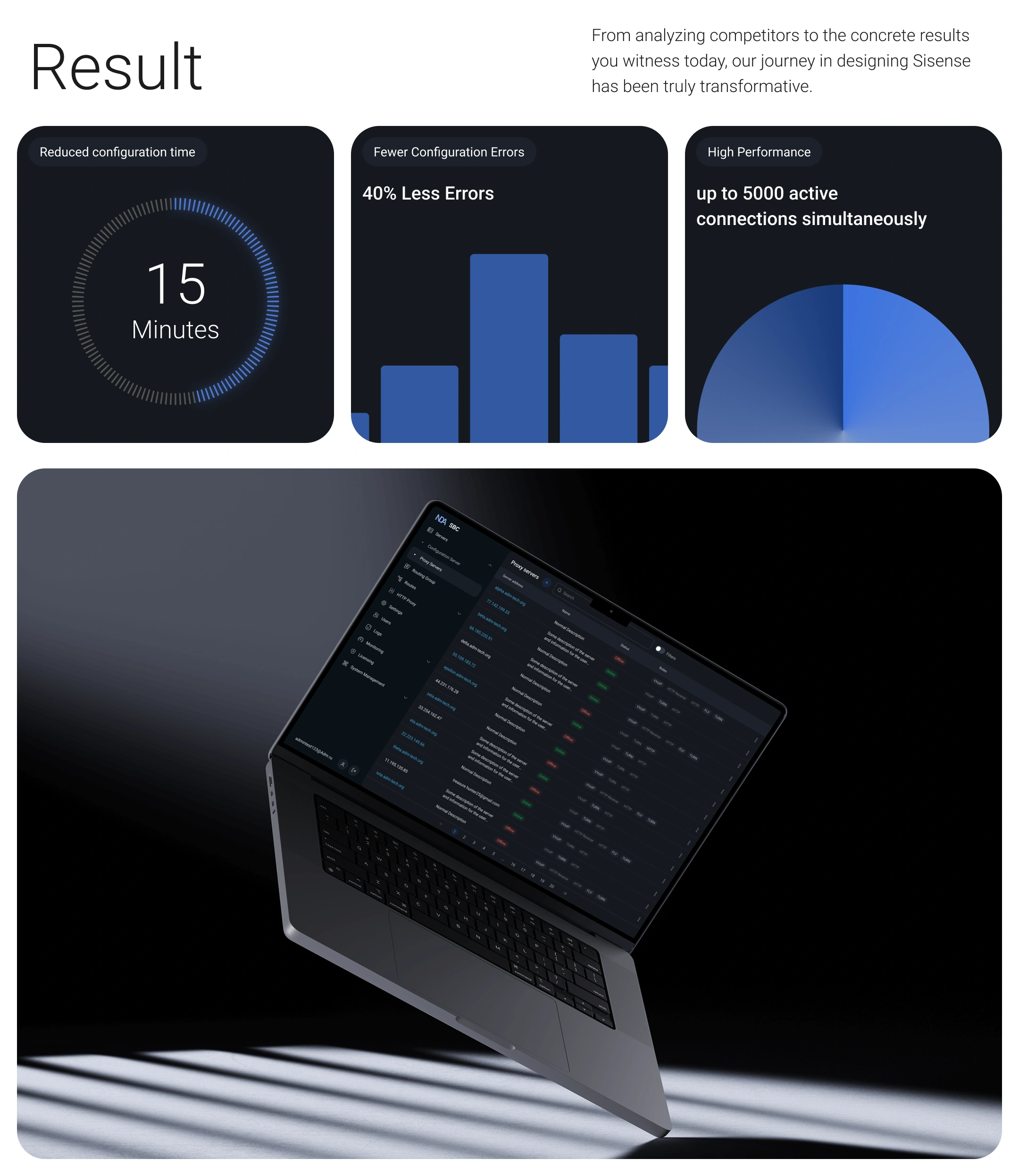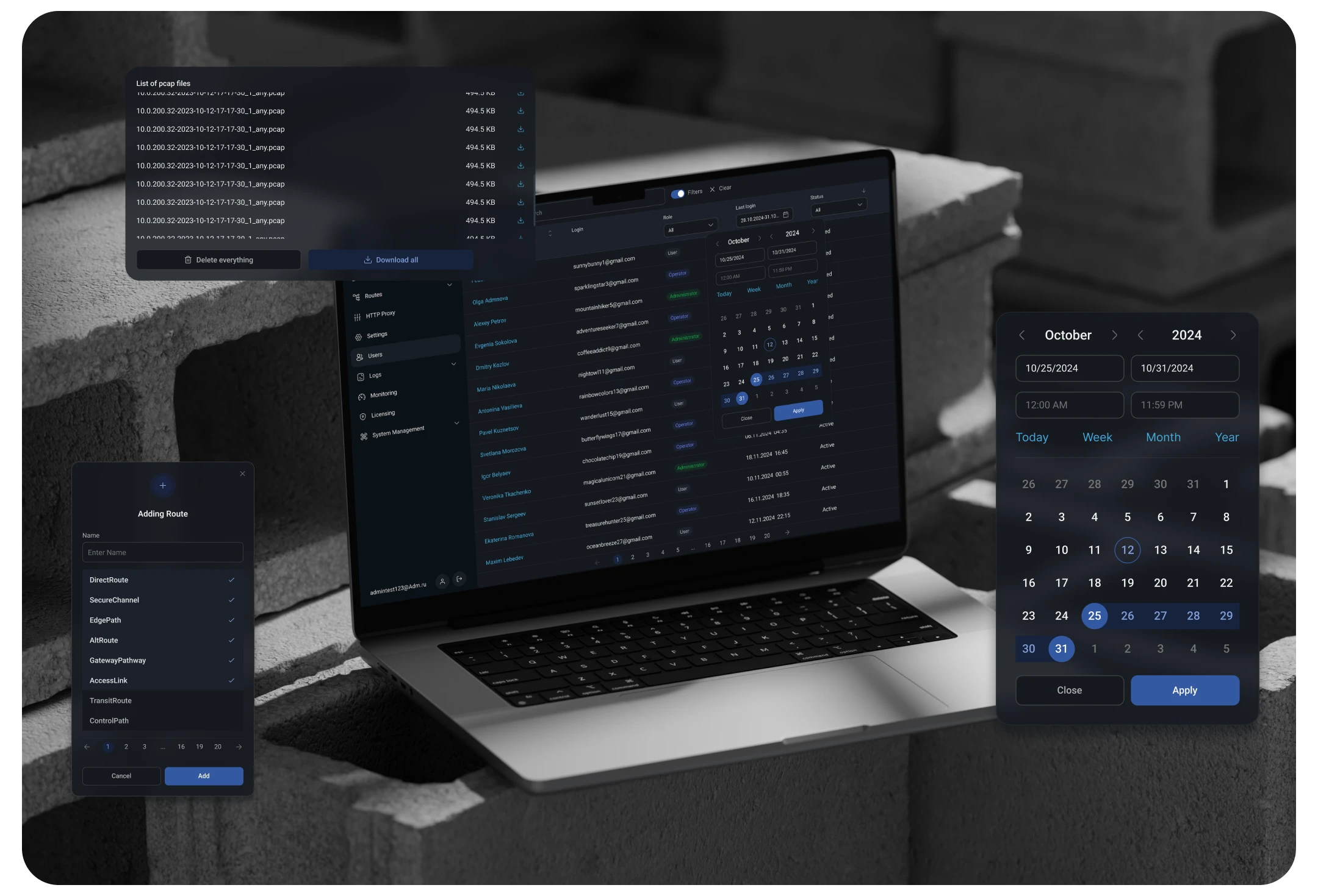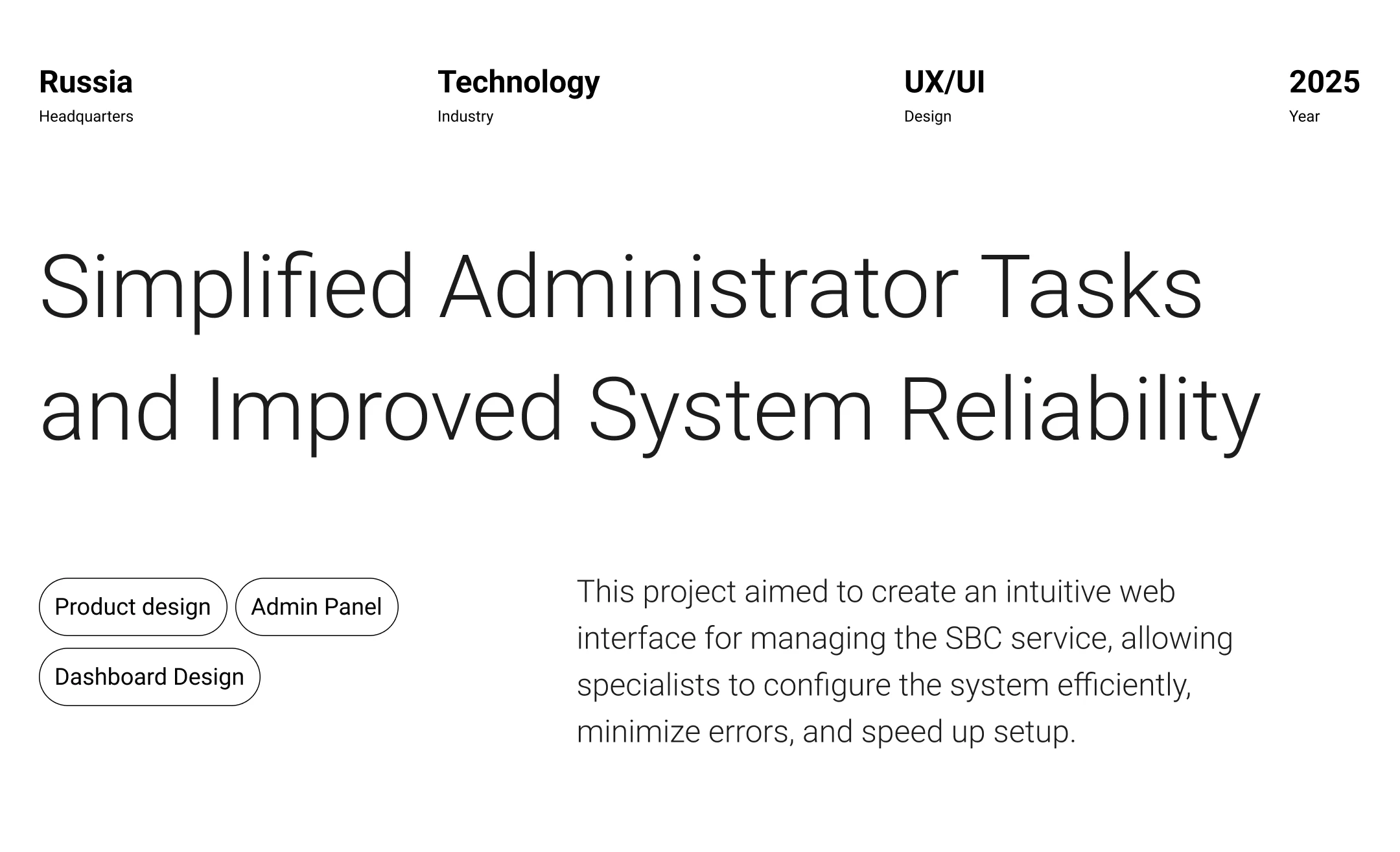 Designed UX/UI for admin system: research → prototypes → UI → reduced setup time, fewer errors, supports 5000+ connections without lags.