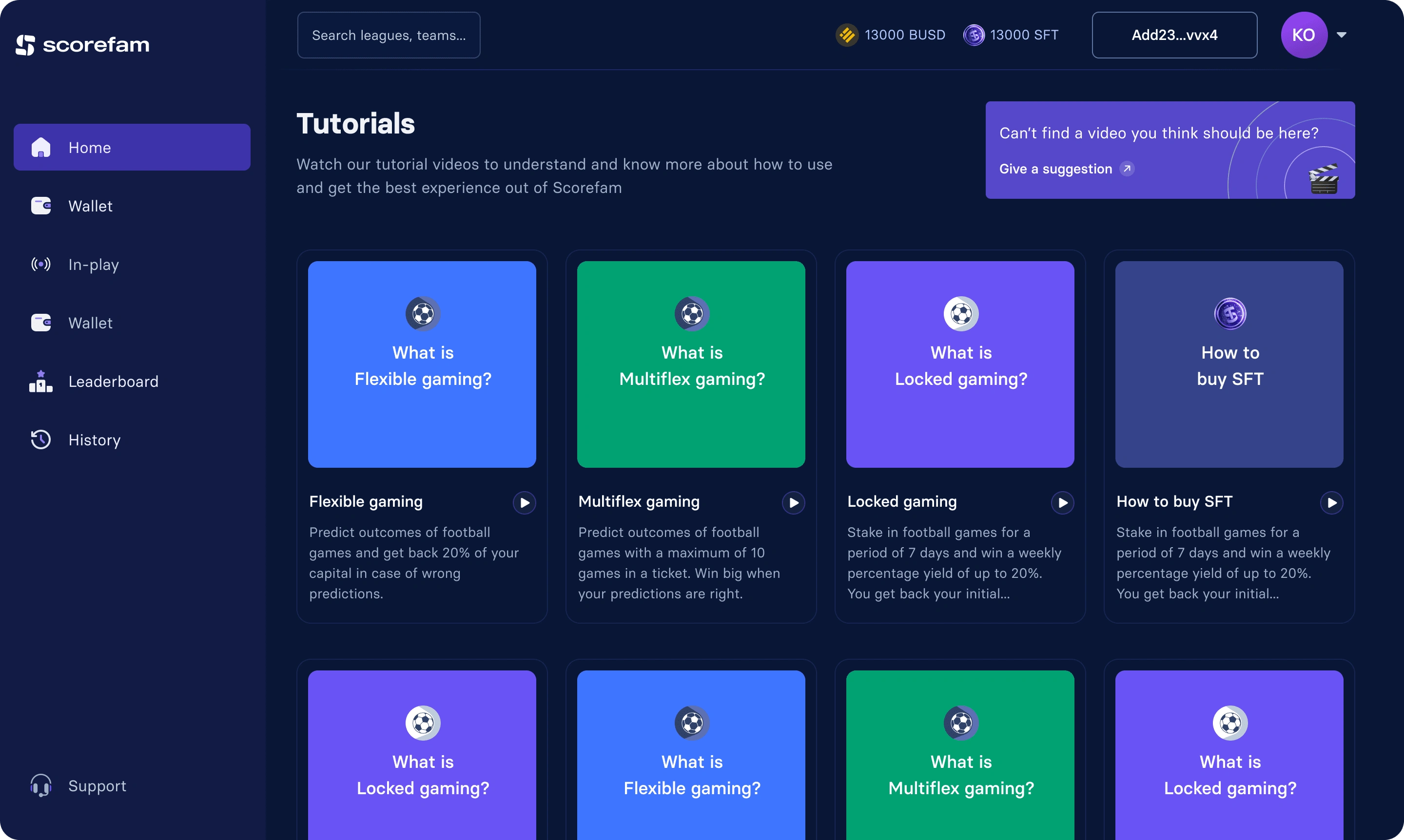 Scorefam is a crypto-based sports prediction platform. Users can bet on sports games and real-life events on the platform using crypto tokens.