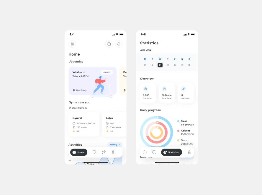 I redesigned a fitness and activity-tracking mobile app to deliver a more intuitive, motivating, and data-driven user experience. The goal was to simplify navigation, increase user engagement, and present health metrics in a way that feels friendly, clear, and instantly digestible.