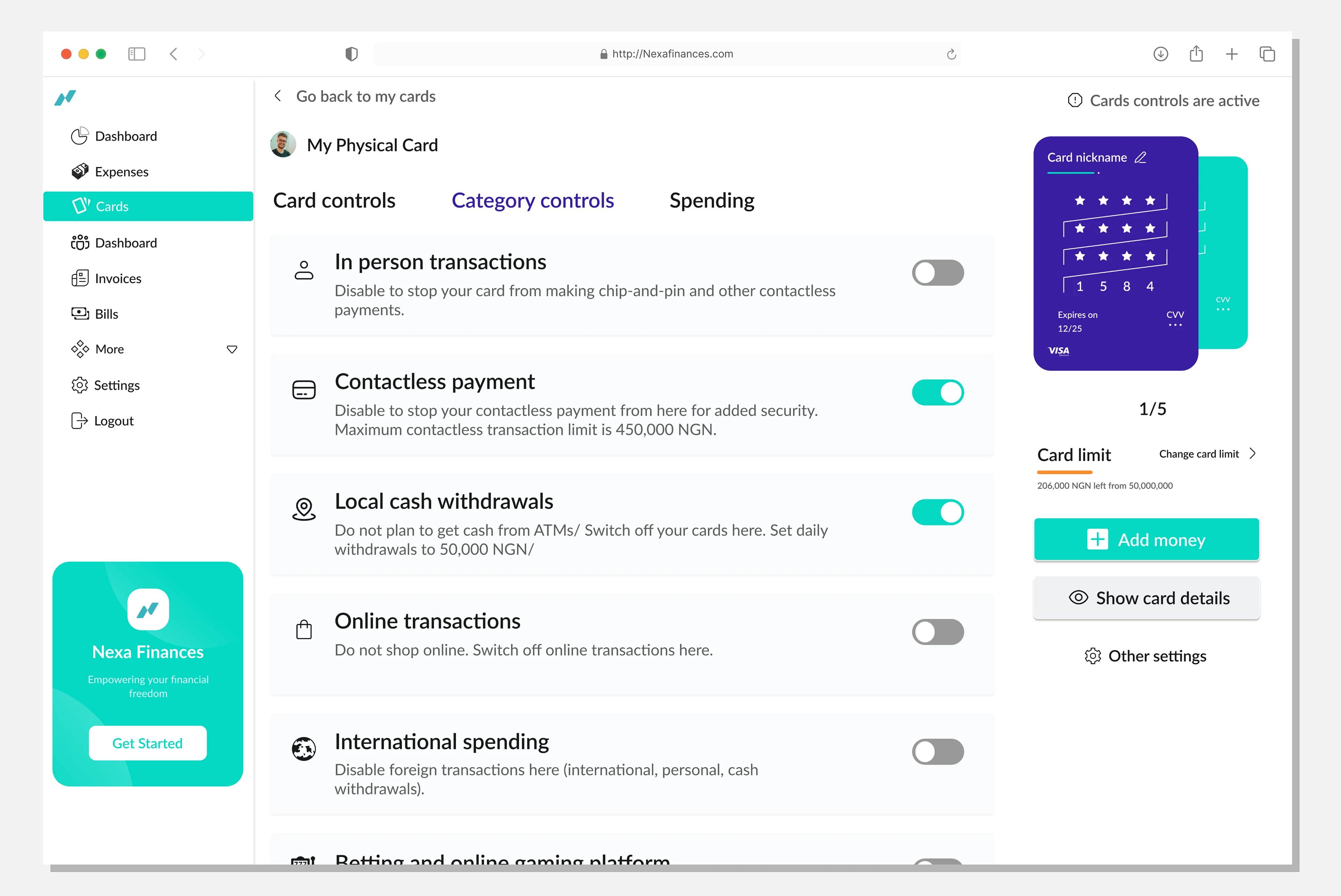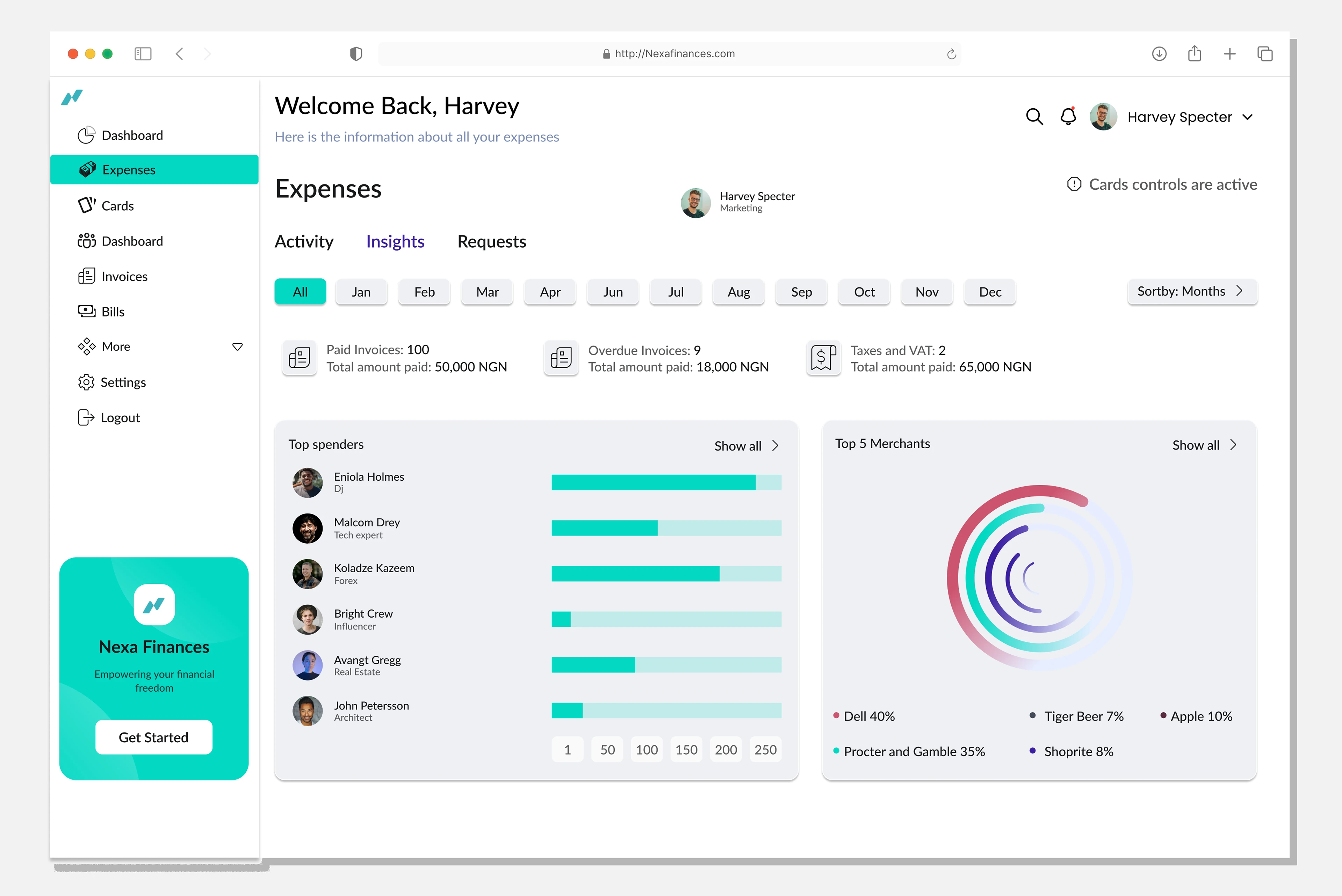 Nexa Finance Expense Management Dashboard is designed to provide users with a streamlined and visually engaging way to monitor and manage their finances