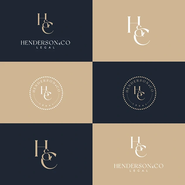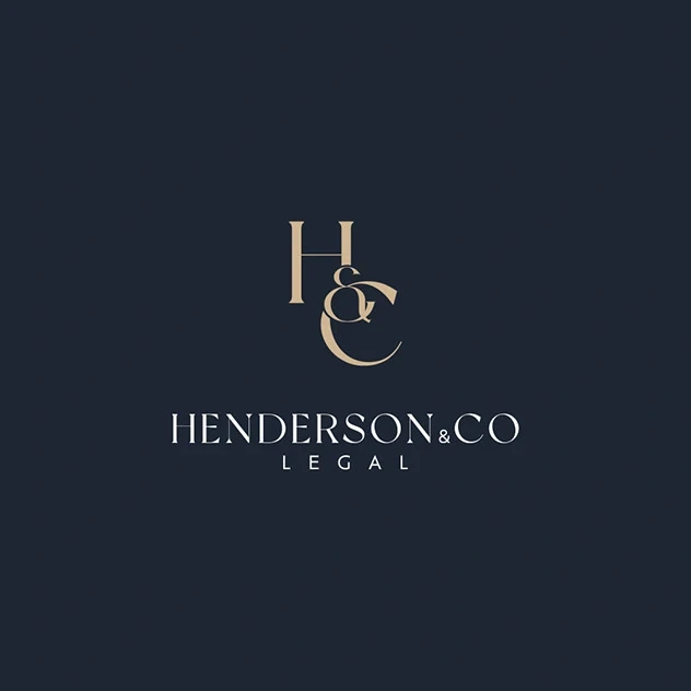 Brand identity and print collateral for Henderson & Co. Legal, including logo, business stationery, and client materials to convey trust and professionalism.
